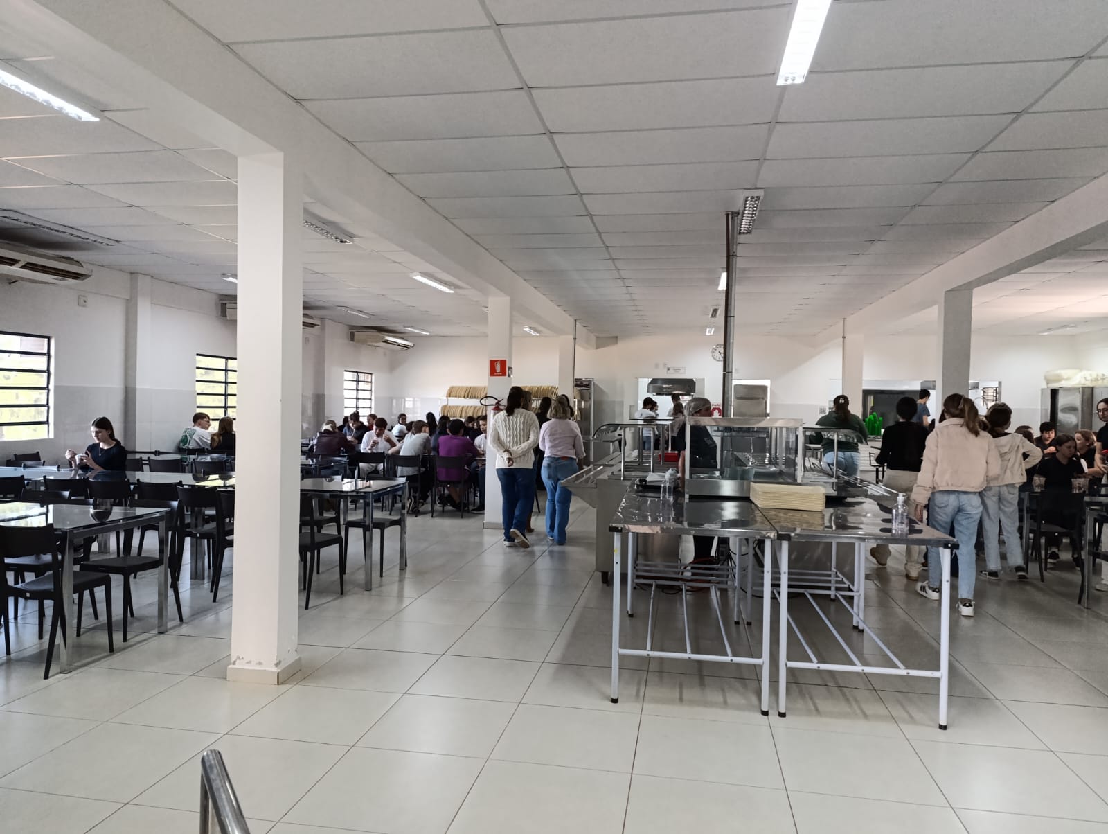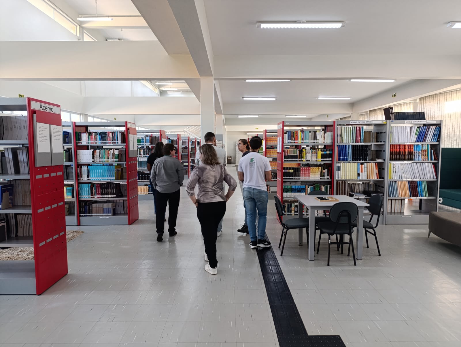 Após a apresentação, foi realizada uma visita no Campus, iniciando no auditório, passando pelo Napne, cooworking, prédio administrativo, laboratórios de informática e alimentos, salas de aula, refeitório, Prédio de Ciência e Tecnologias, Ginásio de Esportes e Biblioteca.