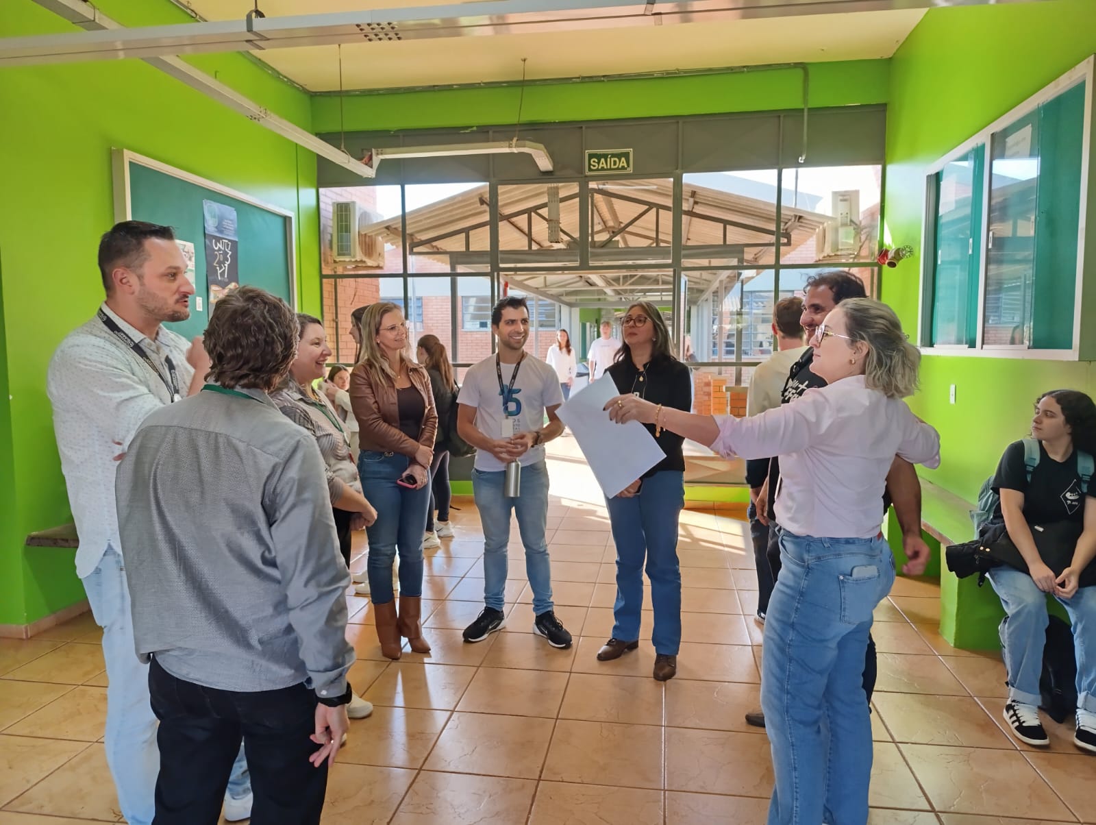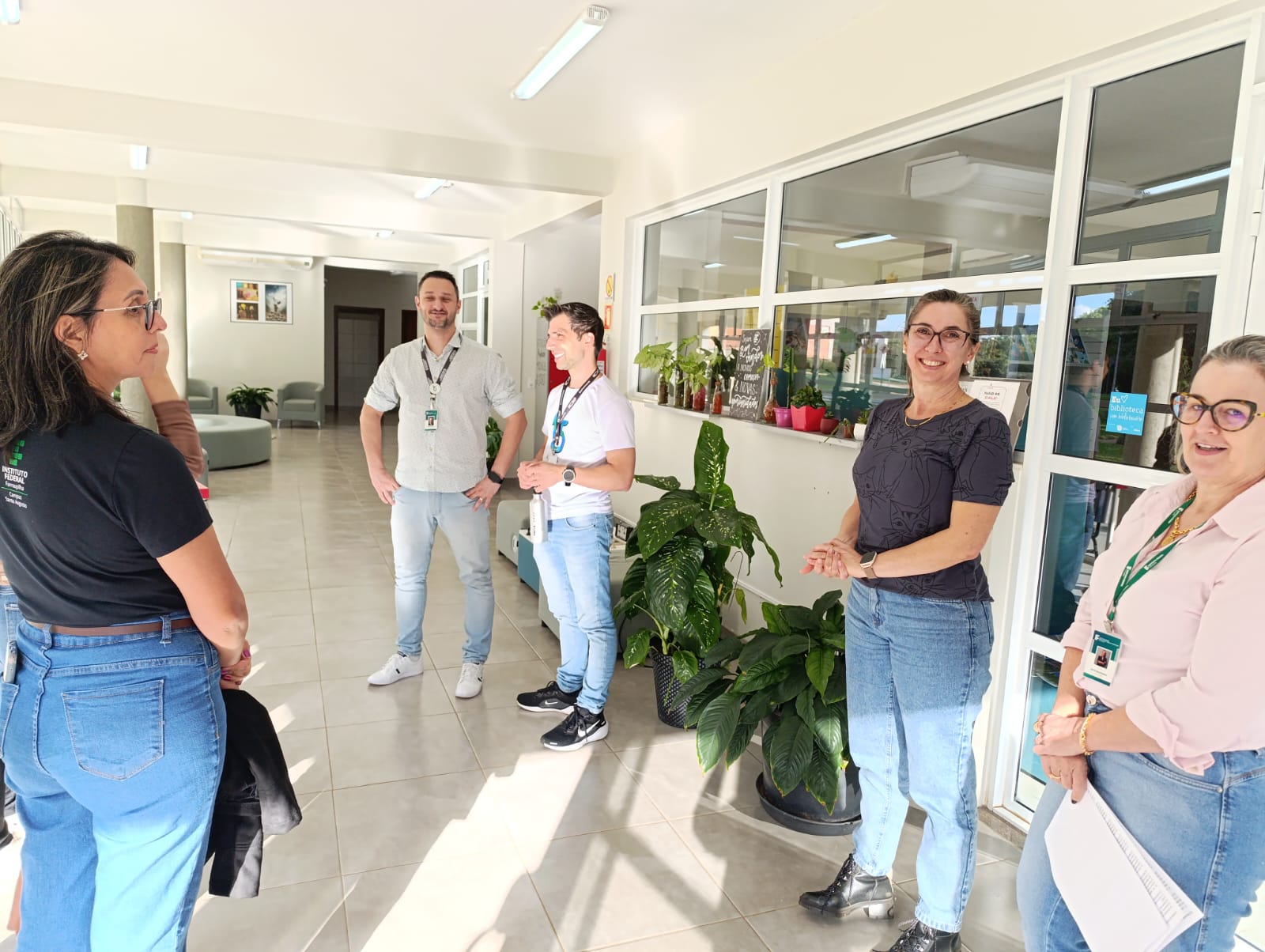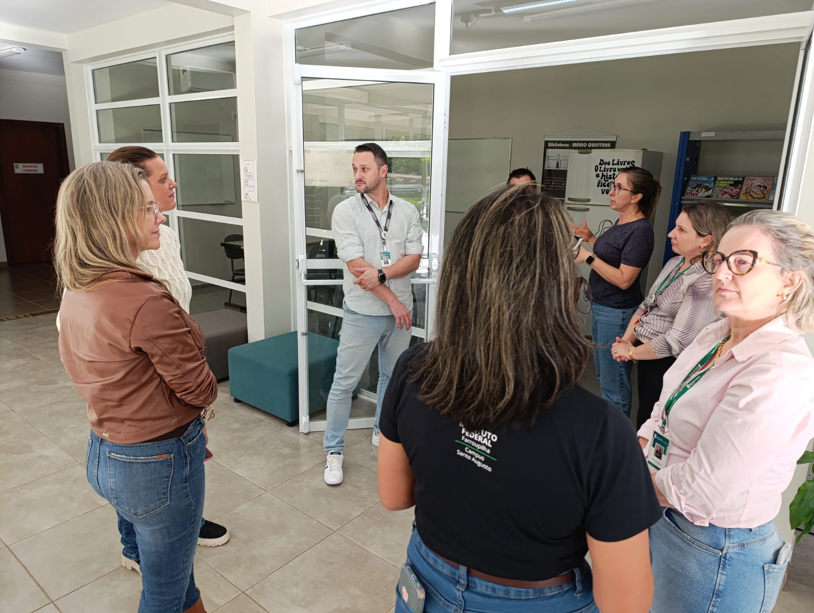 O grupo foi recebido pela Diretora Geral, Márcia Fink, pela Diretora de Ensino, Téoura Benetti, pela Diretora de Planejamento e Desenvolvimento Institucional, Janice Boeira e pela Diretora de Administração, Elizangela Sulzbach Pasa.