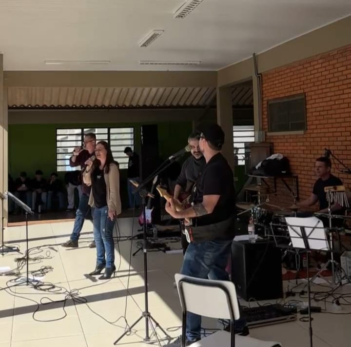 Na ocasião, também foi realizada a despedida do professor Cleiton Reisdorfer Silva que está deixando o campus após um ano e meio como professor substituto de língua portuguesa. O professor também integrou nesse período a Banda IF Musical. "Participar da Banda IF Musical nestes quase dois anos foi uma experiência muito especial. Compartilhar ensaios, apresentações e momentos de aprendizado com os alunos, sempre sob a coordenação atenta e dedicada do Sandro e do Marcos, foi extremamente enriquecedor. A banda foi mais do que um espaço musical: foi um lugar de convivência, amizade e crescimento pessoal. Sou grato pelo acolhimento, pelo companheirismo e por todo o aprendizado que levarei comigo para a vida, destaca o professor.