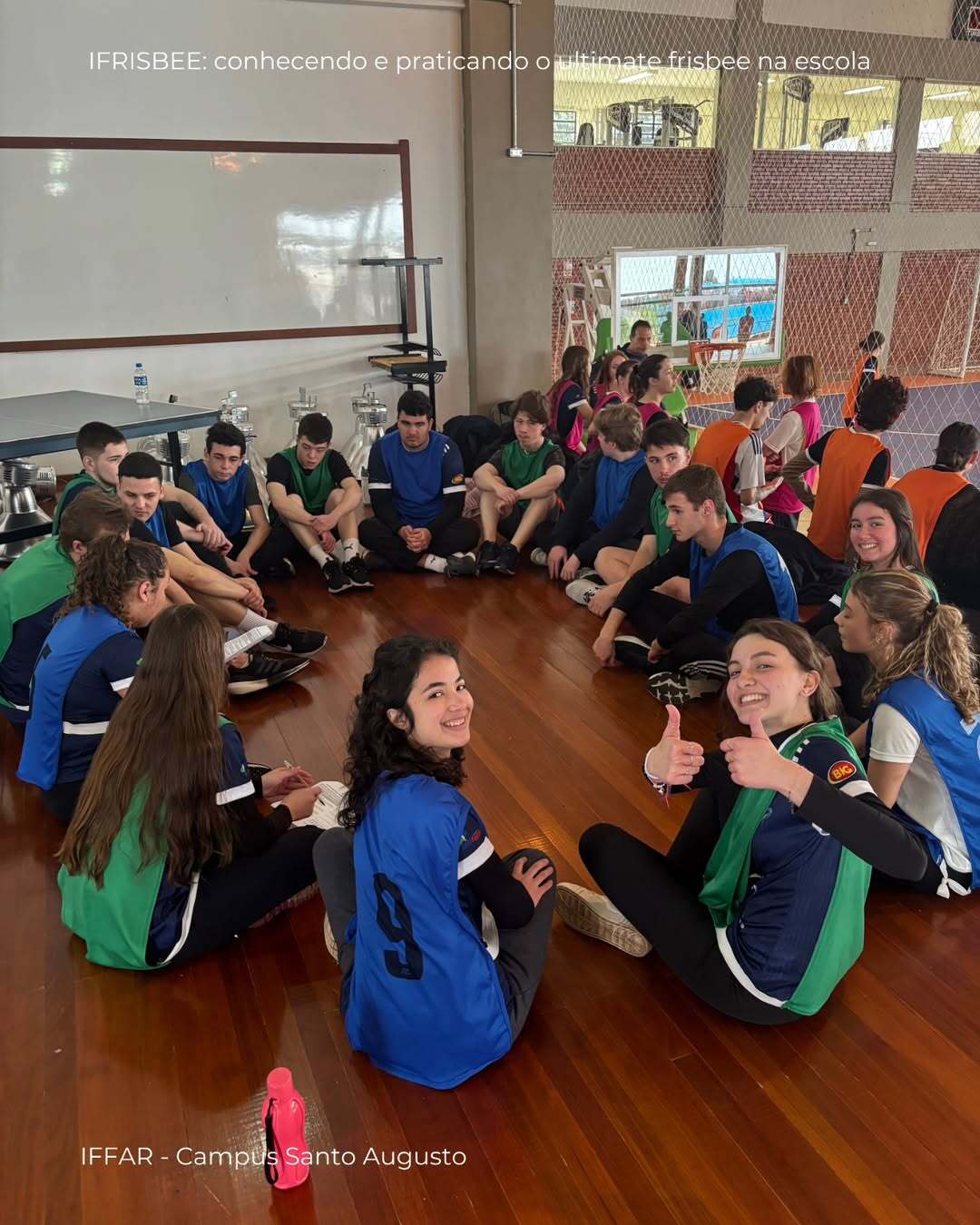 O IFFar – Campus Santo Augusto recebeu no dia 20 de agosto, por meio do projeto de extensão “IFRISBEE: conhecendo e praticando o ultimate frisbee na escola”, a visita de alunos e alunas dos cursos técnicos integrados em Informática e Administração Instituto Federal do Rio Grande do Sul - IFRS - Campus Bento Gonçalves, acompanhados pela professora Cibele Alves dos Santos.
