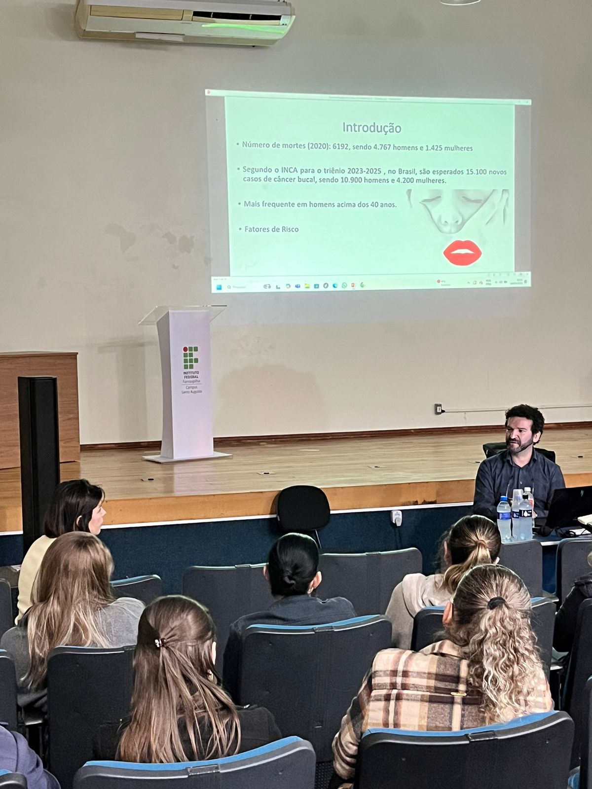 A palestra integra o projeto de extensão “IFFar Saúde Bucal: Prevenção e Detecção Precoce do Câncer Bucal no Município de Santo Augusto”, sob coordenação da cirurgiã-dentista do IFFar – Campus Santo Augusto, Débora Cristina Speroni, com o apoio de alunos e servidores da instituição.