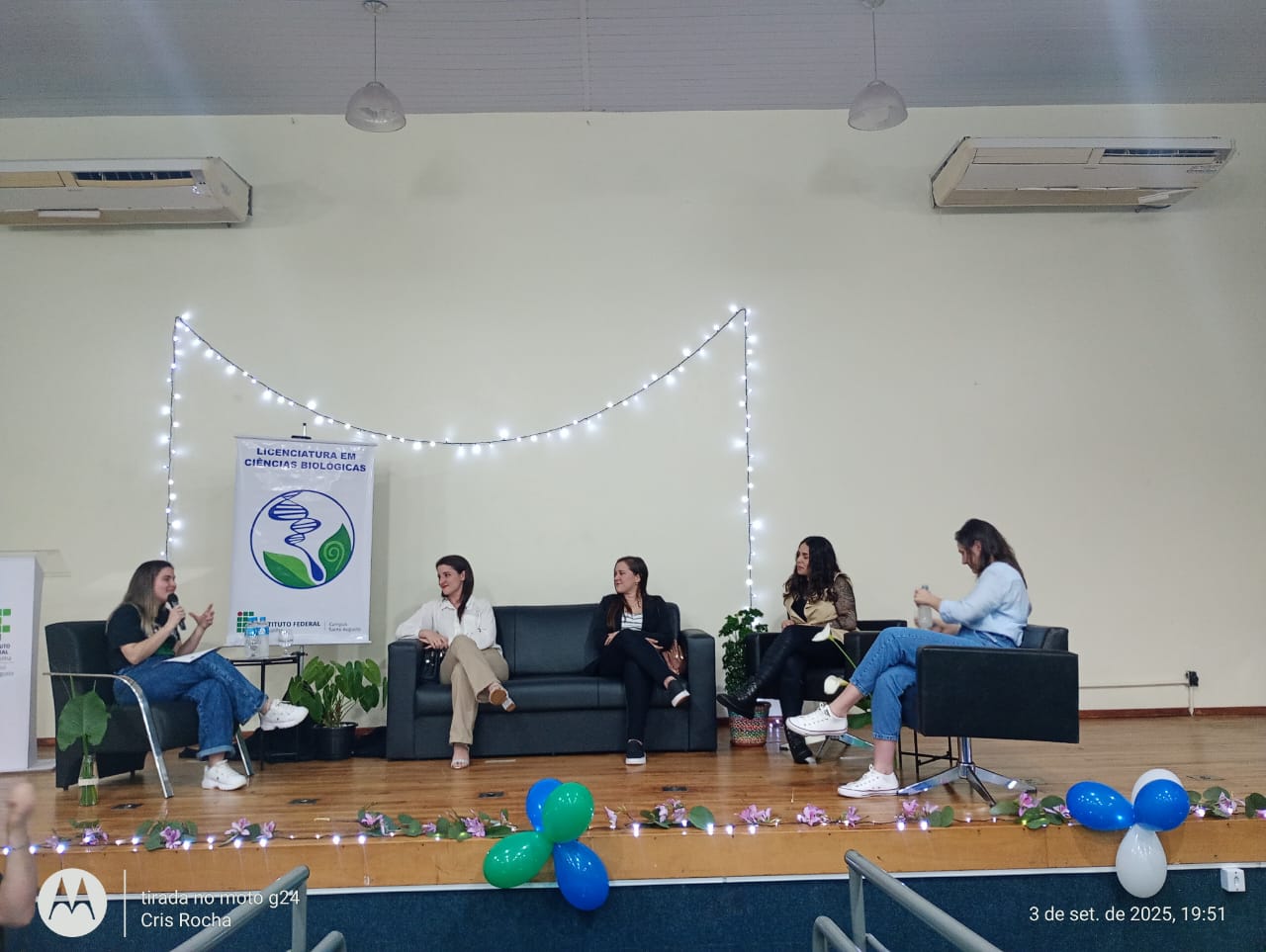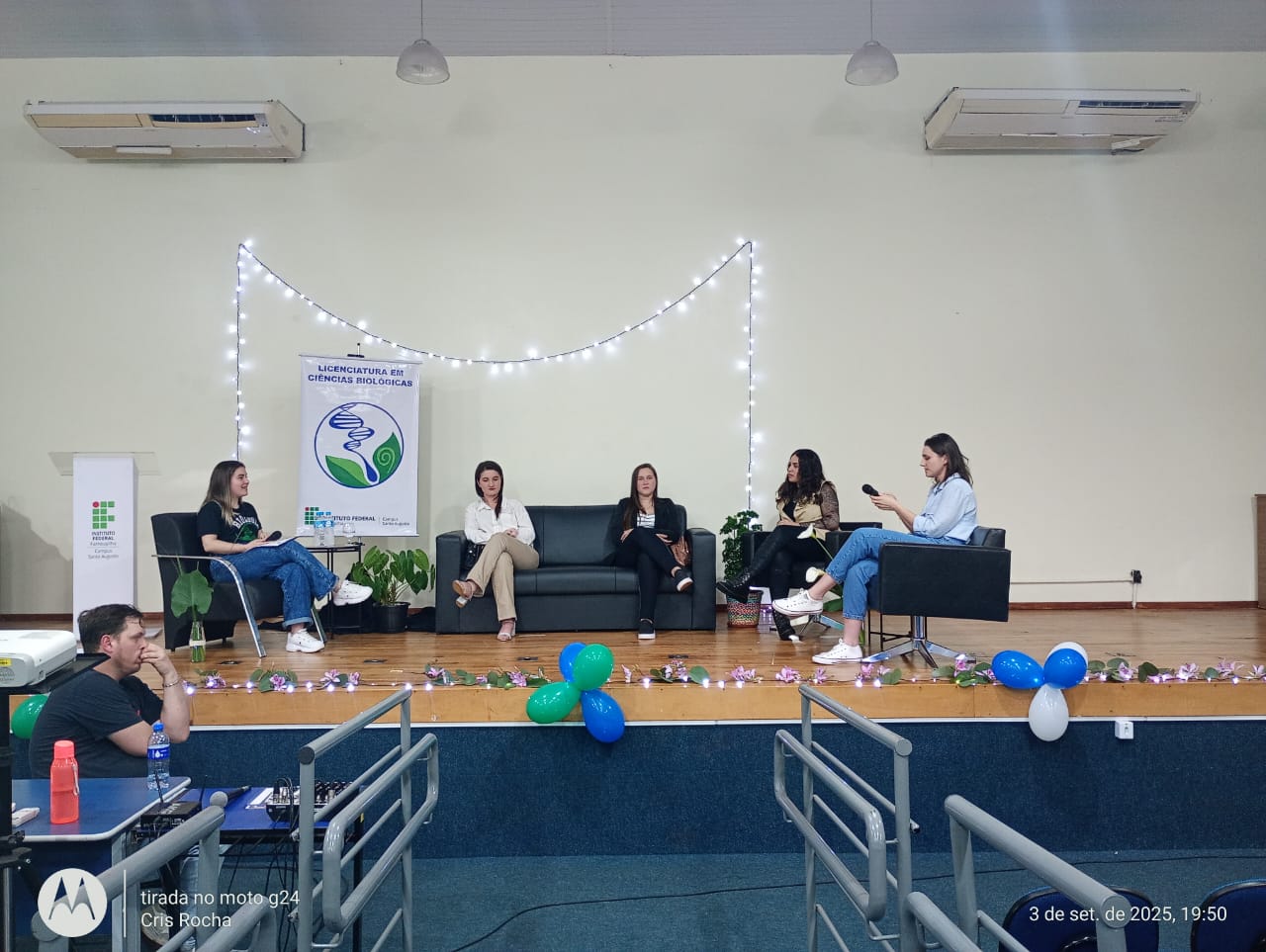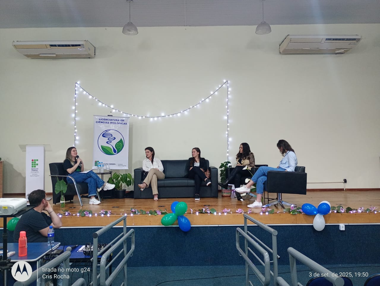 O evento teve início no dia 03, às 19h, no auditório da instituição, com a Mesa Dialógica com o tema “Licenciatura em Ciências Biológicas: desafios, possibilidades e caminhos na carreira”, com a participação da convidada Ataiz Colvero e as egressas Andressa Vargas, Diuly Vianna e Merceder Elwanger,