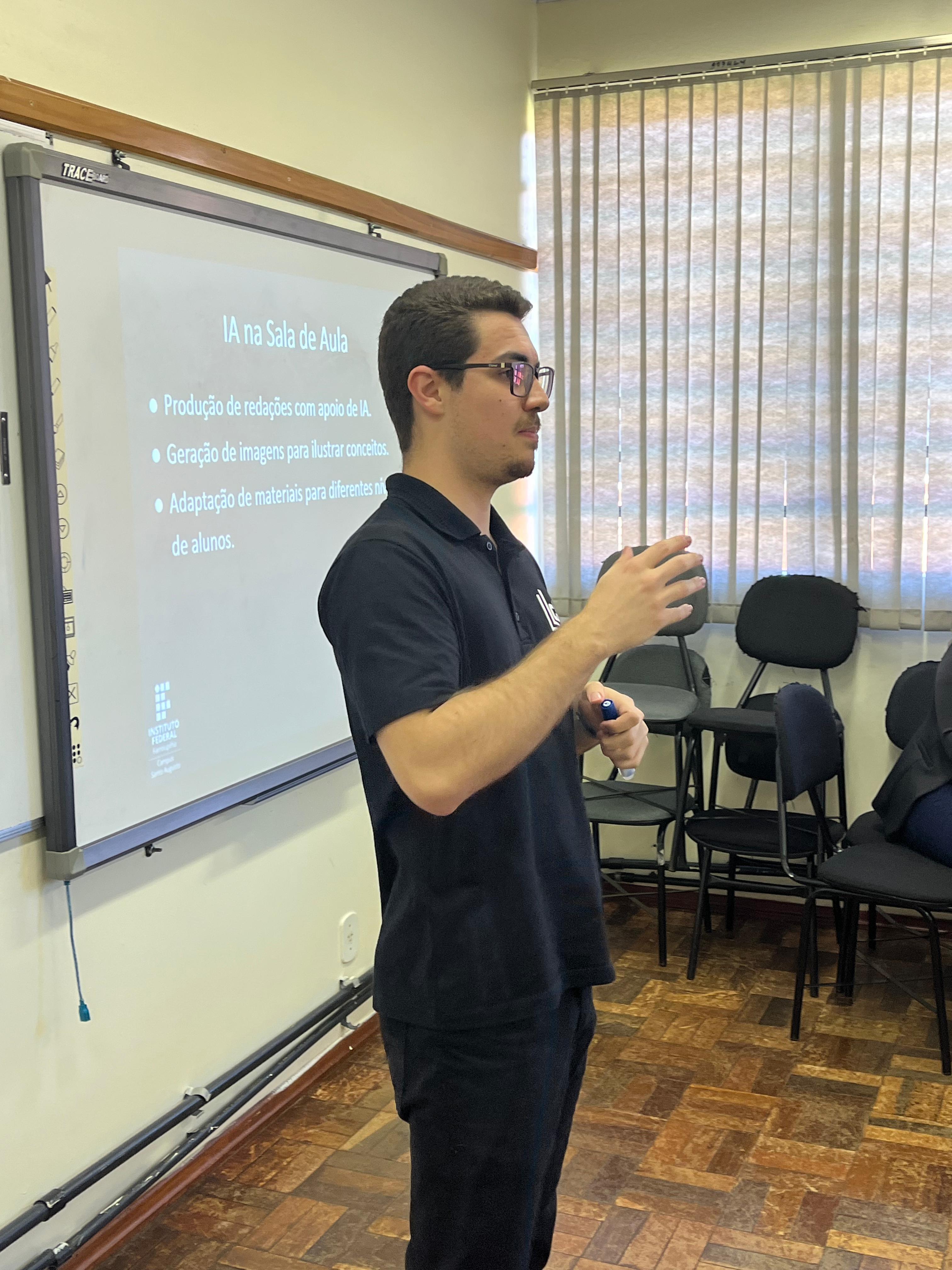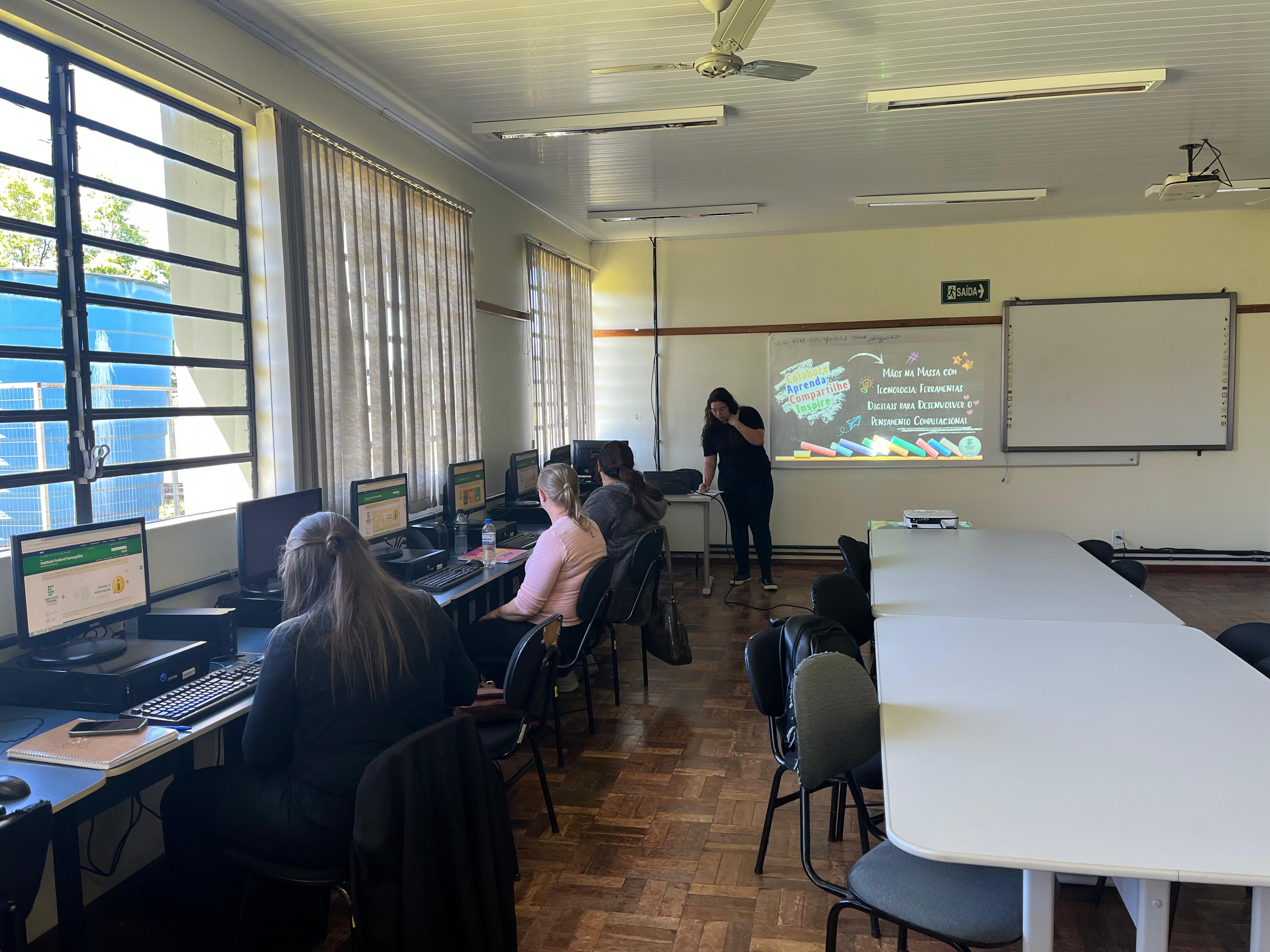 As oficinas foram realizadas nos laboratórios de informática do IFFar – Campus Santo Augusto e contaram com a participação de professores dos 21 municípios da região celeiro. Os acadêmicos, Guilherme Julian Scherer e Michel Arthur Hirt, ministraram a oficina com o tema “Desvendando problemas com criatividade: pensamento computacional em ação”; a acadêmica, Eduarda Inês Klein, ministrou a oficina “Mãos na massa com tecnologia: ferramentas digitais para desenvolver o pensamento computacional; o acadêmico, Allisson Veiga dos Santos, abordou o tema “O que tem dentro do computador? Explorando o mundo digital através dos seus componentes físicos”; e Luan Delaflora Guth ministrou oficina sobre “Inteligência Artificial na sala de aula: criando com IA generativa”.