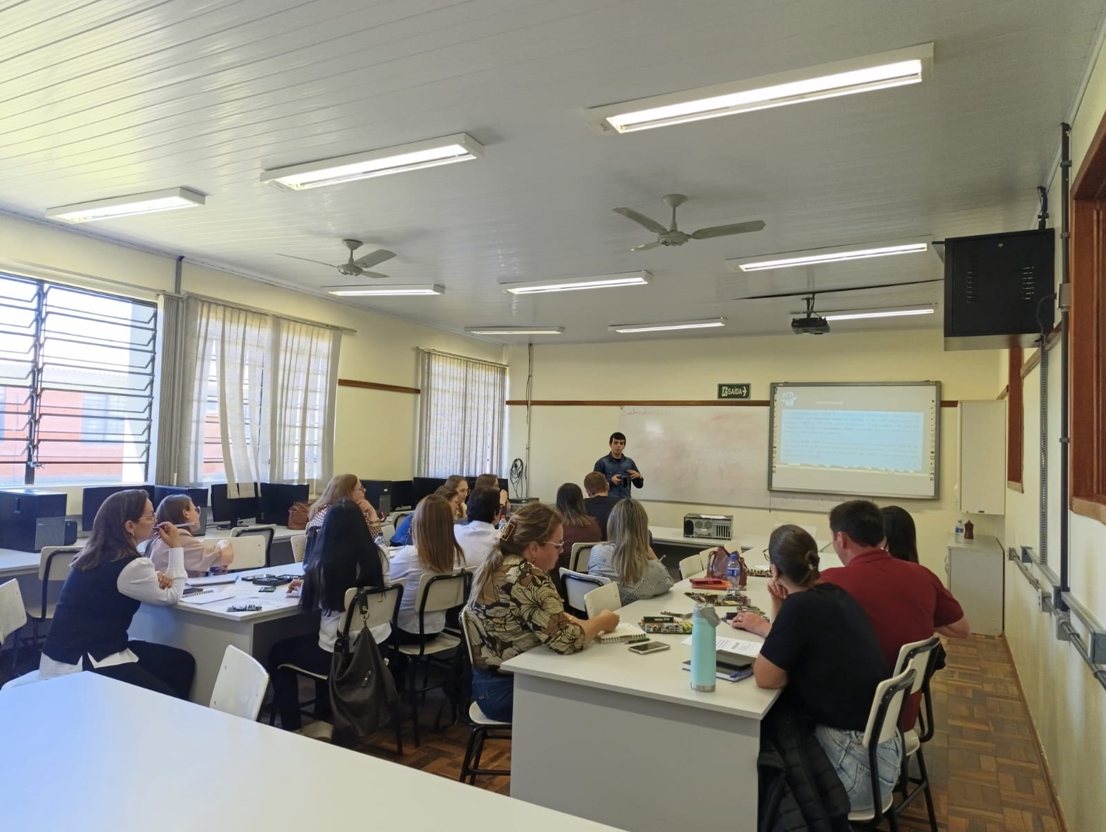A abertura do Workshop aconteceu às 8h da manhã do dia 24, no auditório Feliciano Paulo Guterrez de Moura, na Prefeitura Municipal de Santo Augusto, seguida pela palestra sobre “Computação na Educação Básica”, ministrada pelo assessor pedagógico da SME e egresso da Licenciatura em Computação do IFFar – Campus Santo Augusto, Uianes Biondo.