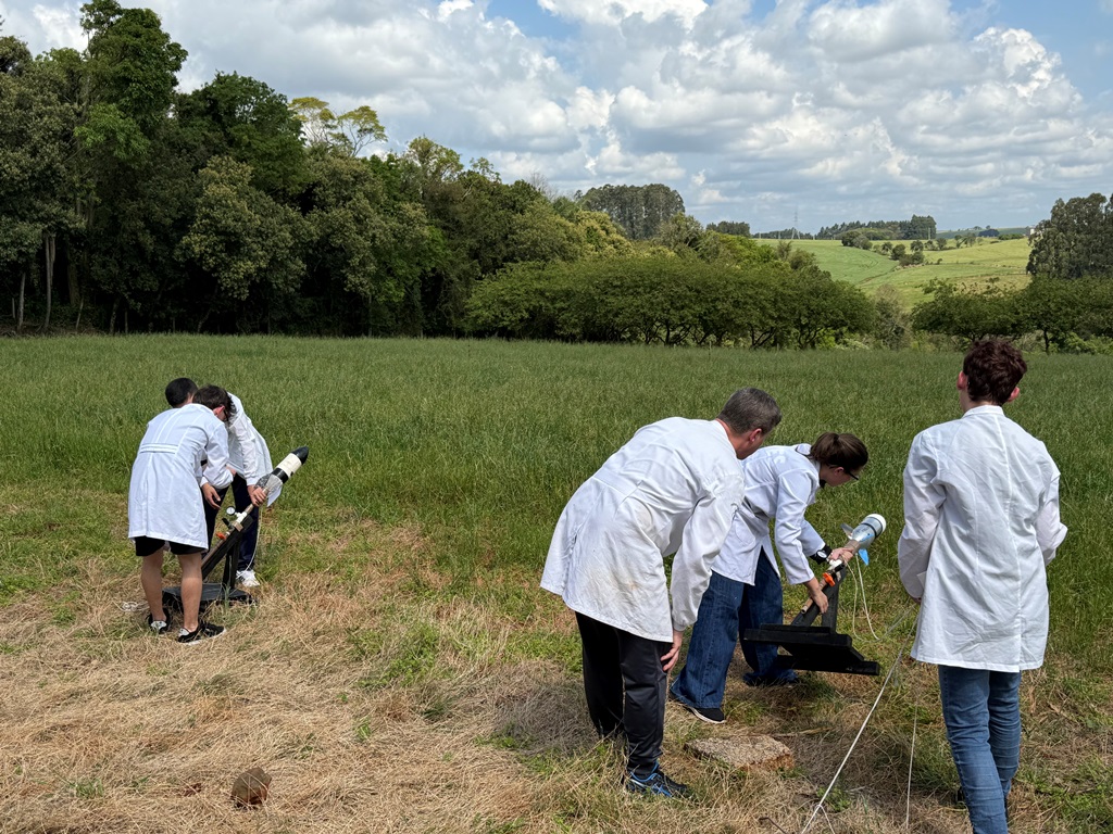 Foi realizada na tarde de segunda-feira, 29 de setembro, no IFFar – Campus Santo Augusto, a seletiva local da Mostra de Foguetes 2025, competição onde alunos lançam “foguetes” construídos com materiais recicláveis e impulsionados por reações químicas. Os lançamentos foram realizados sob a coordenação do professor Carlos Wyrepkowski, em área aberta, e puderam ser acompanhados por estudantes e servidores da instituição.