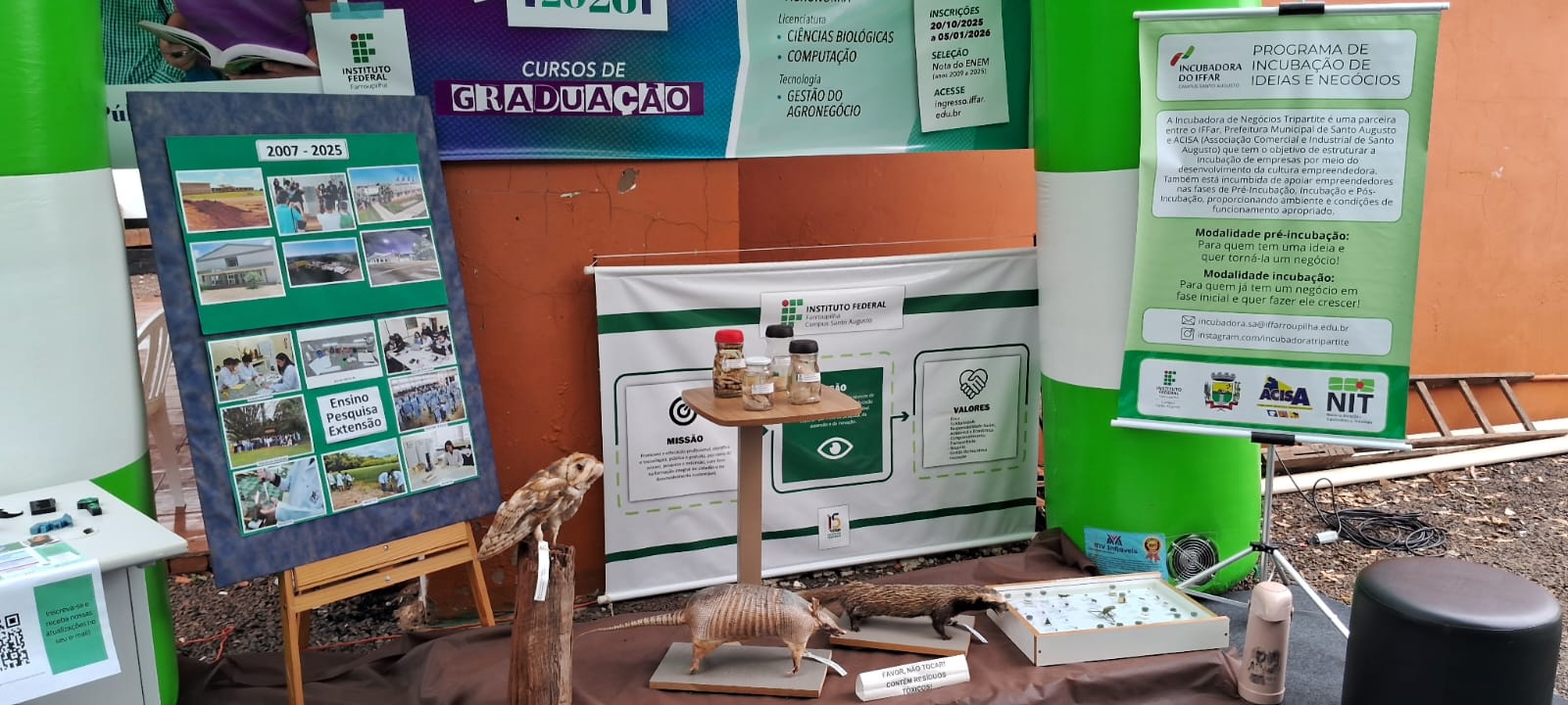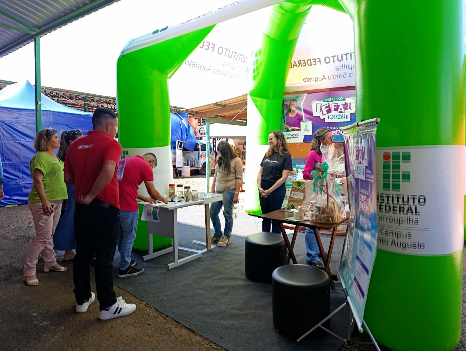 O IFFar – Campus Santo Augusto esteve participando de 03 a 05 de outubro, no parque de exposições do Sindicato Rural em Santo Augusto, da EXPOFESA 2025, através de um estande para divulgação dos cursos oferecidos, onde estudantes e servidores puderam mostrar para a comunidade um pouco do que é realizado pela instituição.