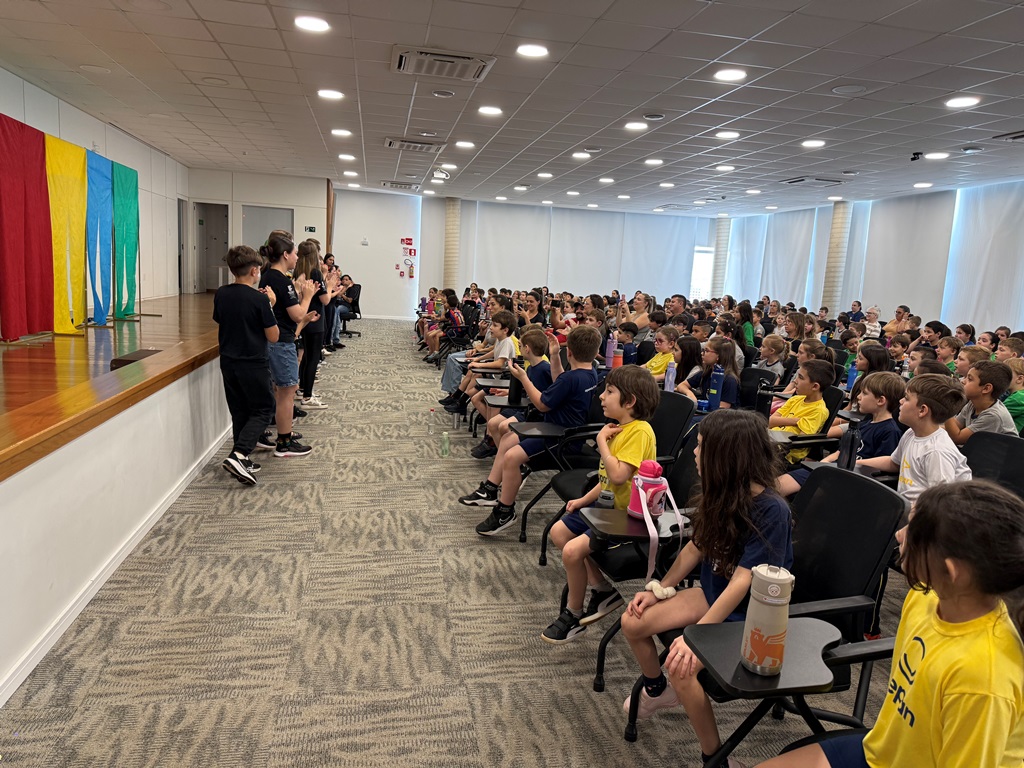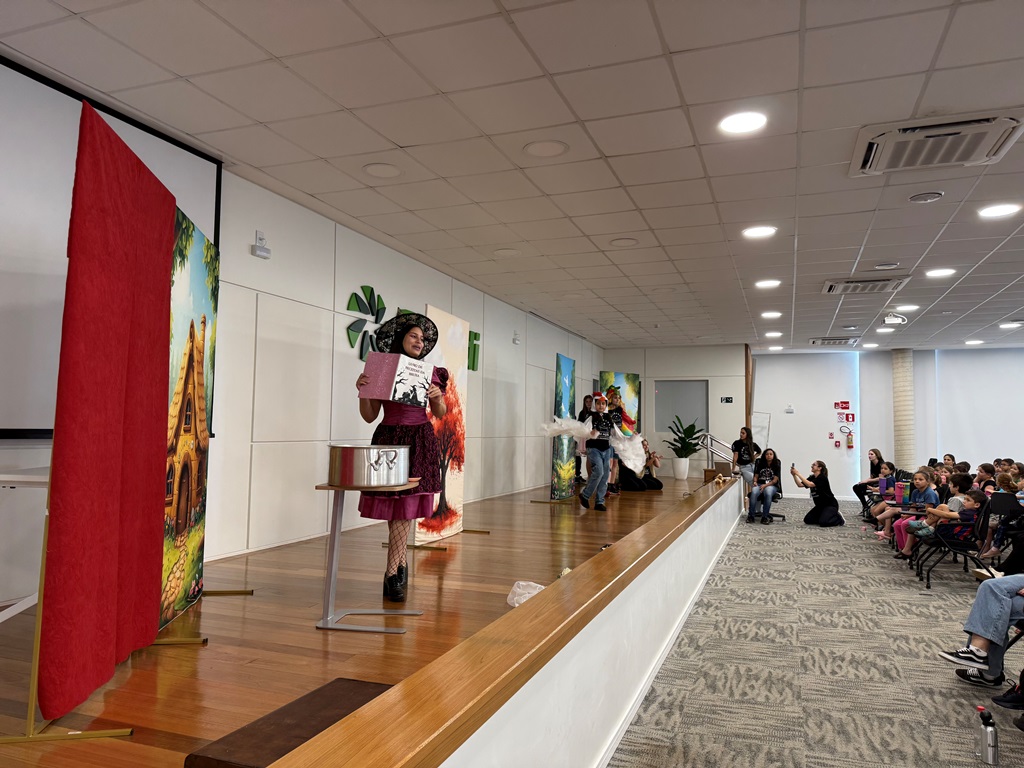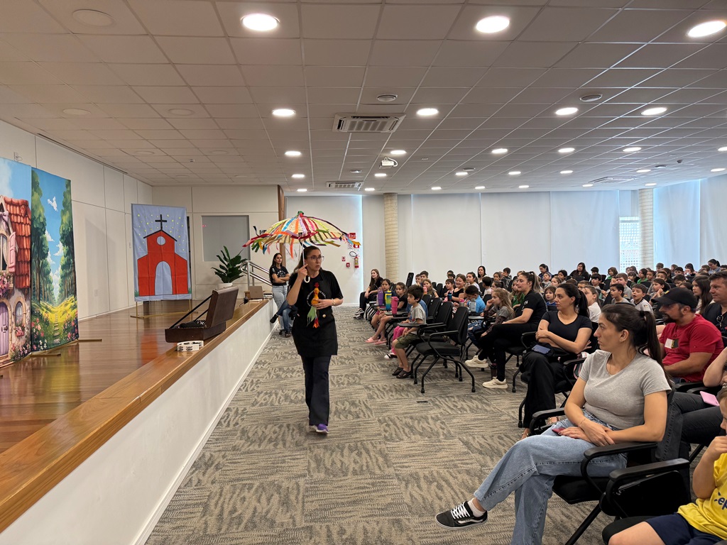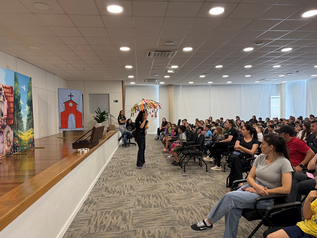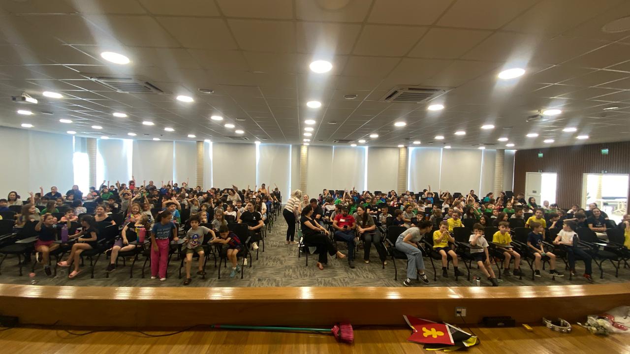 O projeto de extensão “Biblioteca em ação: contar, encantar e educar”, da Biblioteca Mario Quintana do IFFar – Campus Santo Augusto, promoveu na tarde de quarta-feira, dia 05 de novembro, no auditório do Sicredi, o VI Festival de Histórias, com a presença de cerca de 250 estudantes do 1º ano do ensino fundamental de todas as escolas de Santo Augusto, acompanhados por seus professores.