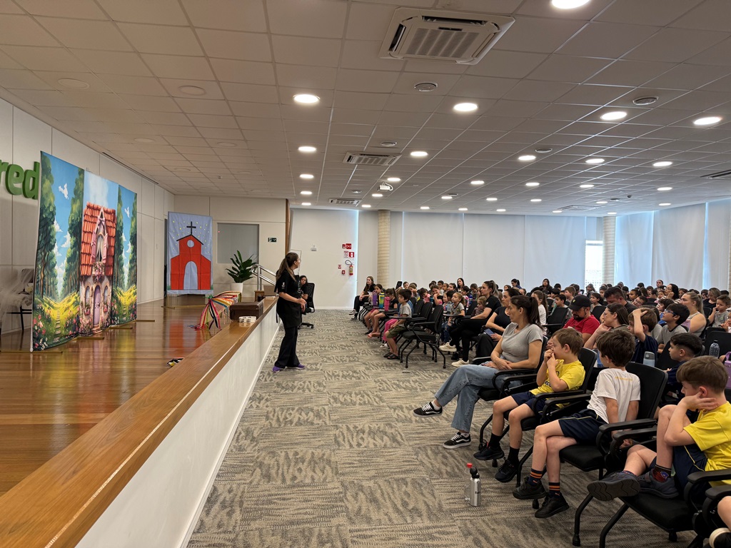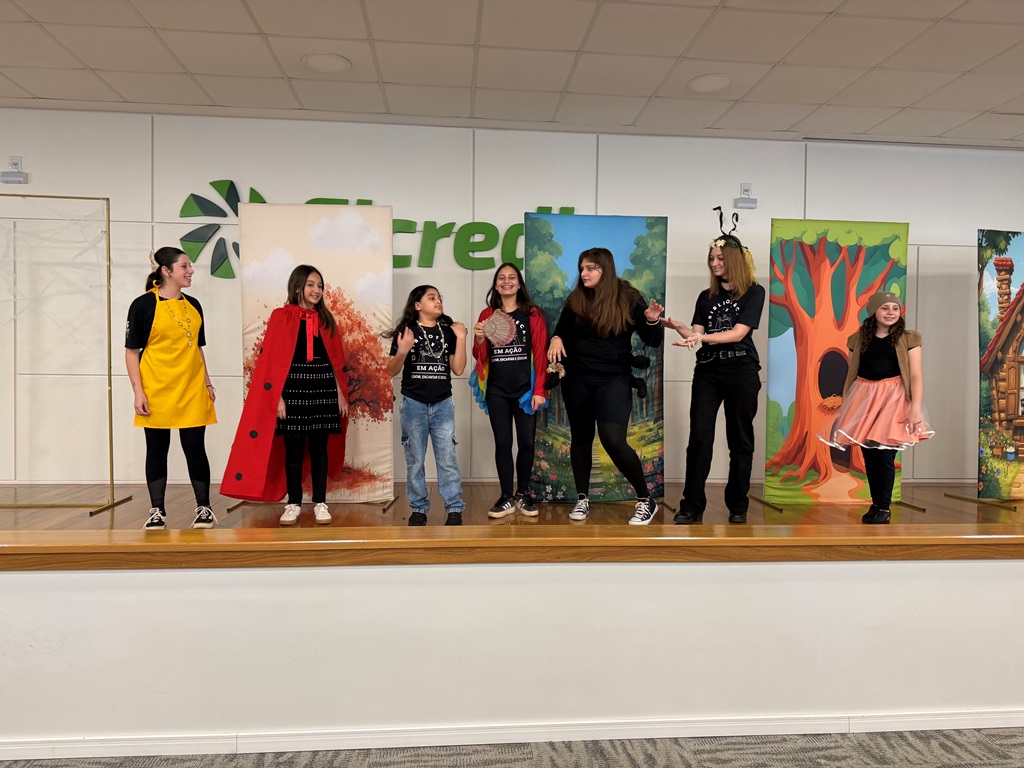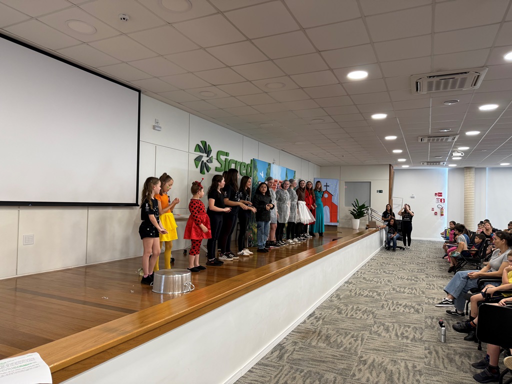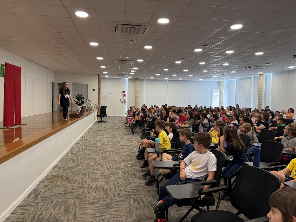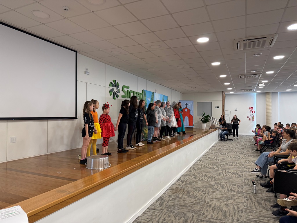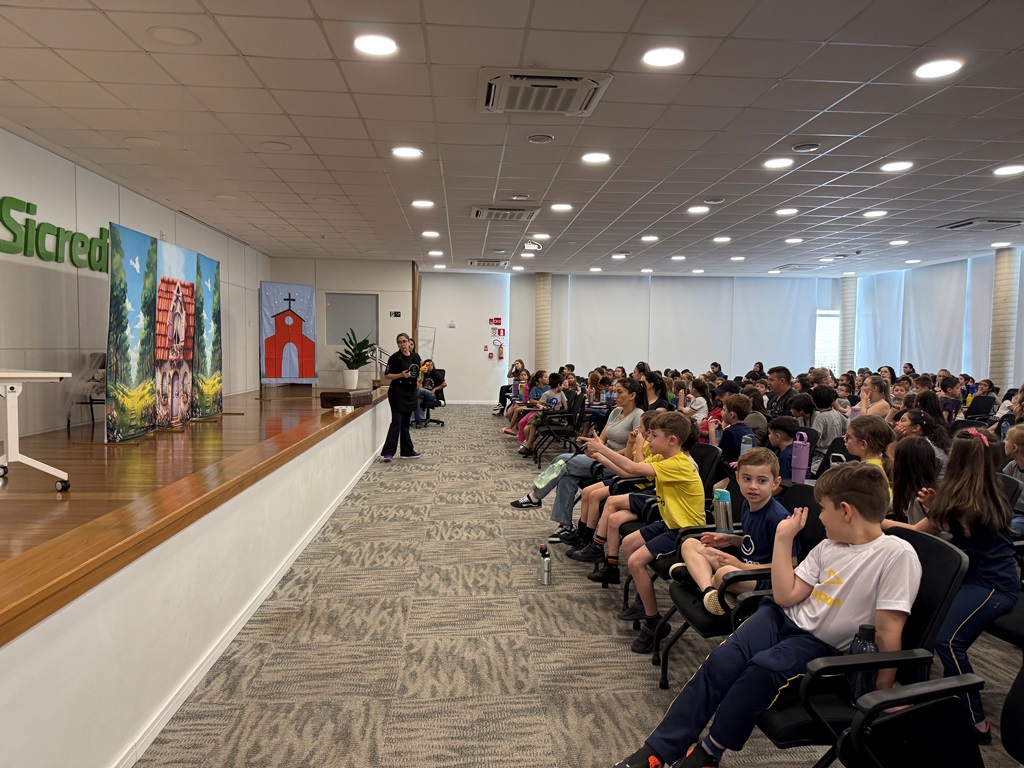 O projeto de extensão “Biblioteca em ação: contar, encantar e educar”, da Biblioteca Mario Quintana do IFFar – Campus Santo Augusto, promoveu na tarde de quarta-feira, dia 05 de novembro, no auditório do Sicredi, o VI Festival de Histórias, com a presença de cerca de 250 estudantes do 1º ano do ensino fundamental de todas as escolas de Santo Augusto, acompanhados por seus professores.