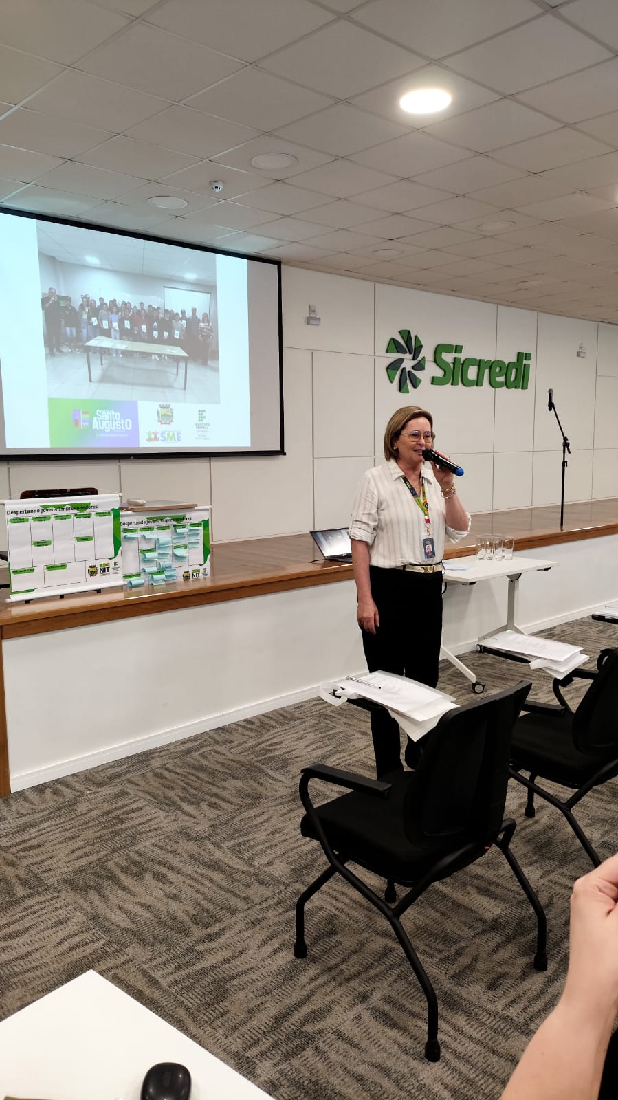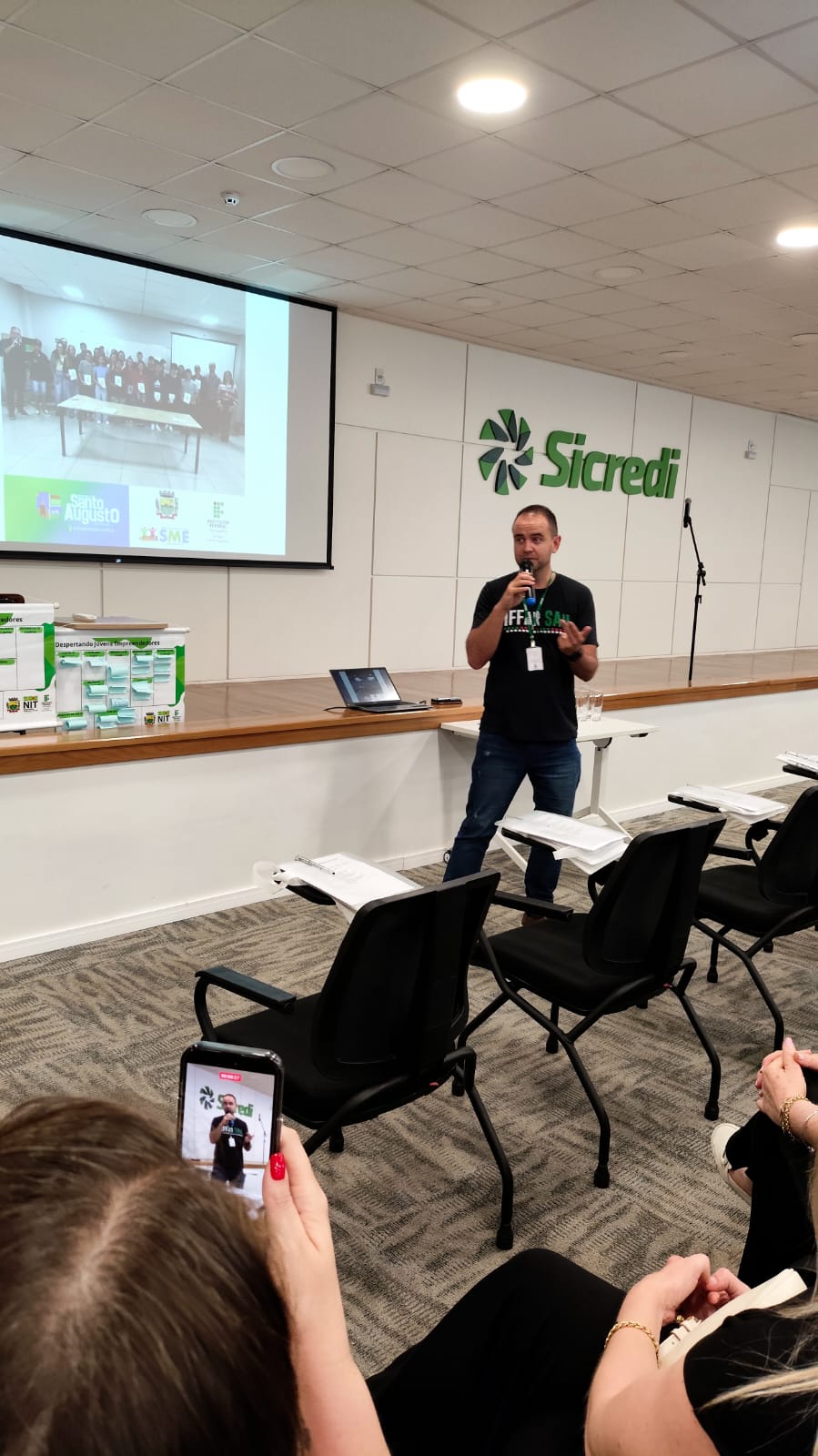 Foi realizado na tarde de segunda-feira, dia 03 de novembro, no auditório do Sicredi, o encerramento do projeto de extensão “Despertando Jovens Empreendedores”, desenvolvido pelo IFFar – Campus Santo Augusto, sob a coordenação do professor Me. Eduardo Hennemann e da professora Dra. Amanda Martin, em parceria com a Secretaria Municipal de Educação de Santo Augusto (SME).