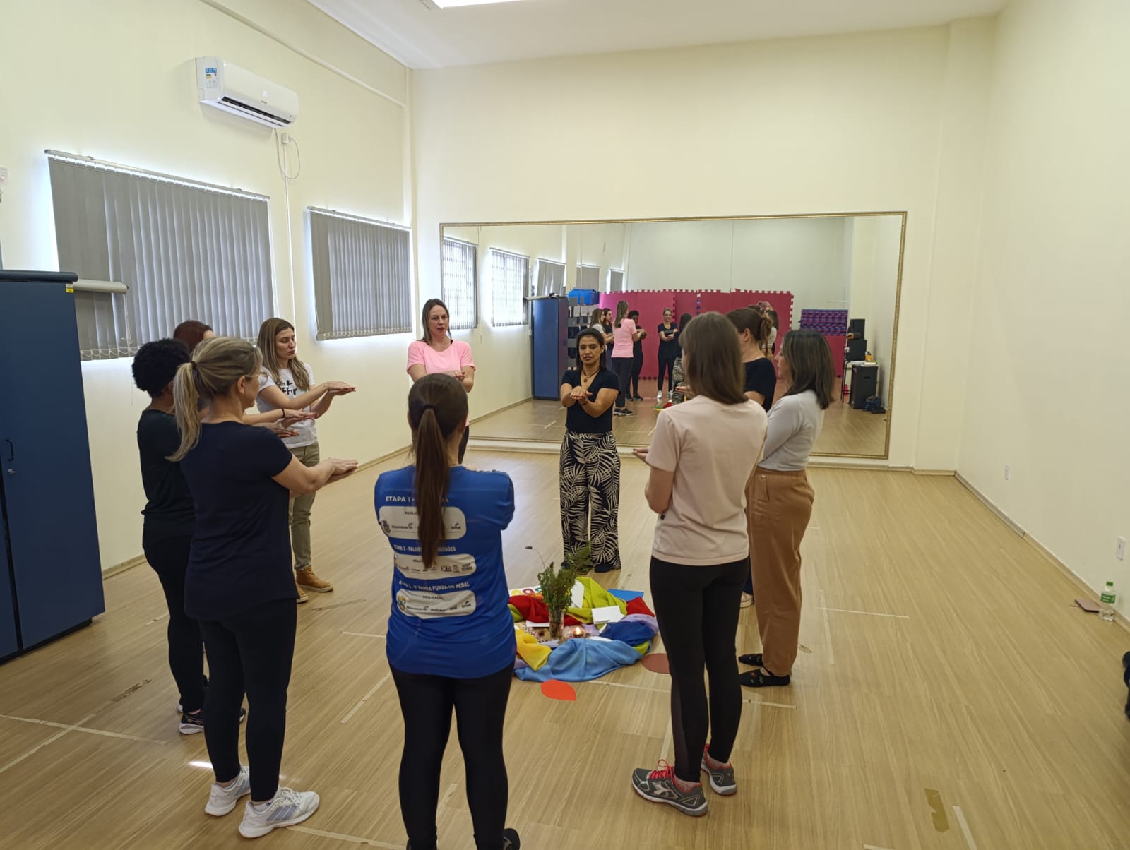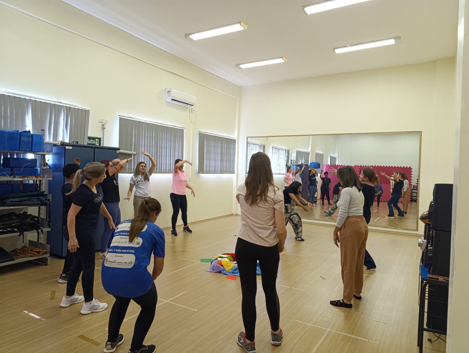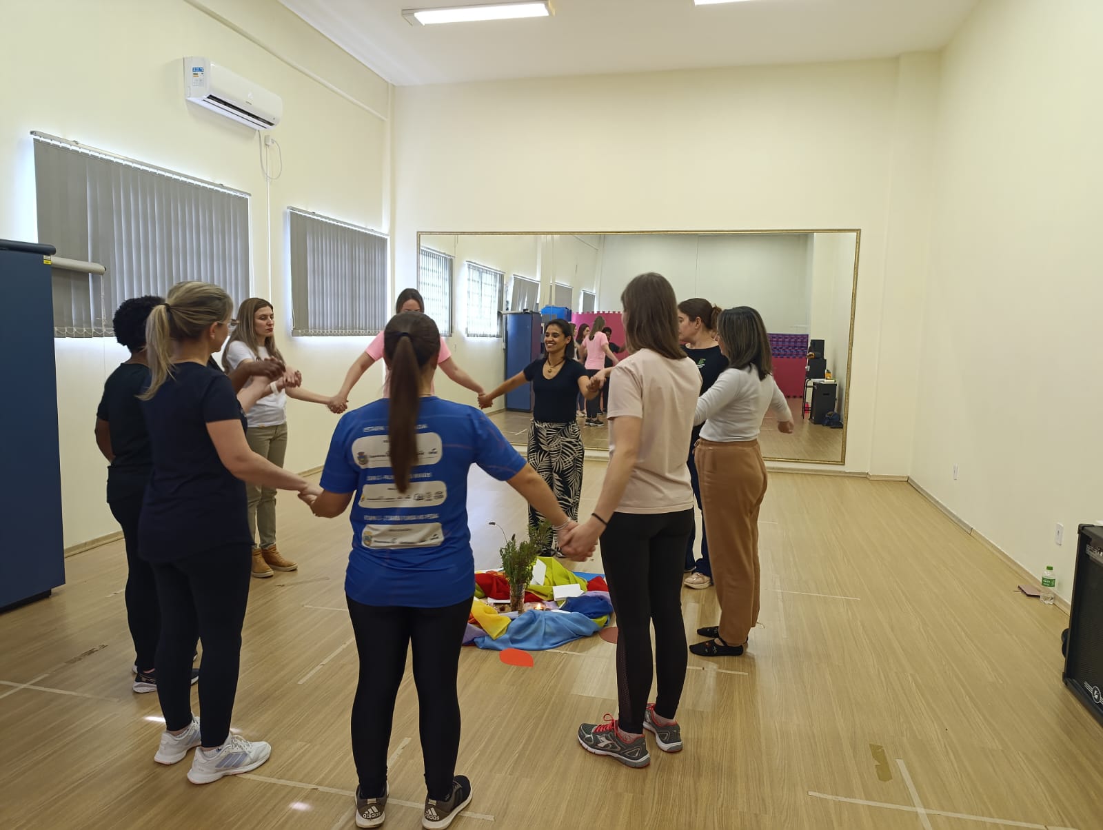 As atividades tiveram início na tarde do dia 22 de outubro, na sala de Dança do Ginásio de Esportes, com a oficina “Sinergia -Autocuidado e Autoconhecimento com a Dança: a beleza de Ser quem Eu Sou”, ministrada pela professora Mª. Laís Cavalheiro Rigo. Na ocasião, as participantes foram guiadas por vivências, em um espaço onde as Danças Circulares, a Biodança e a Dançaterapia se entrelaçaram em uma experiência de movimento livre, espontâneo e profundamente transformador.