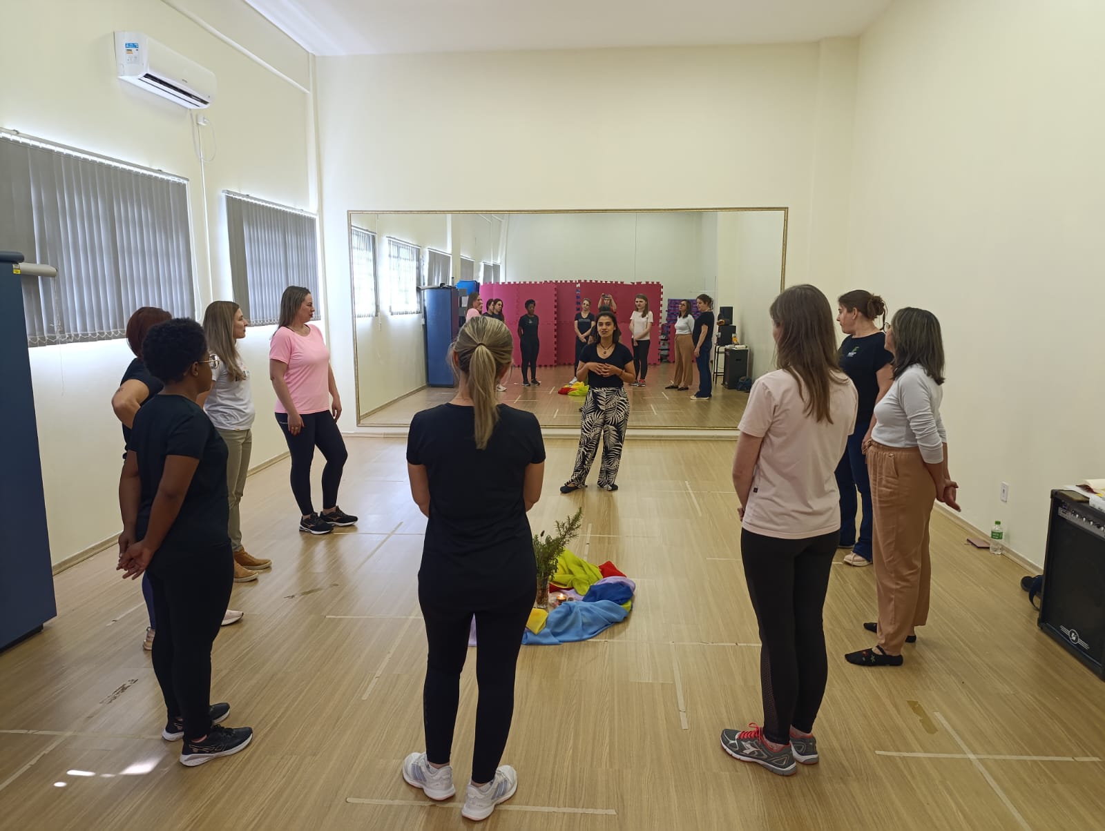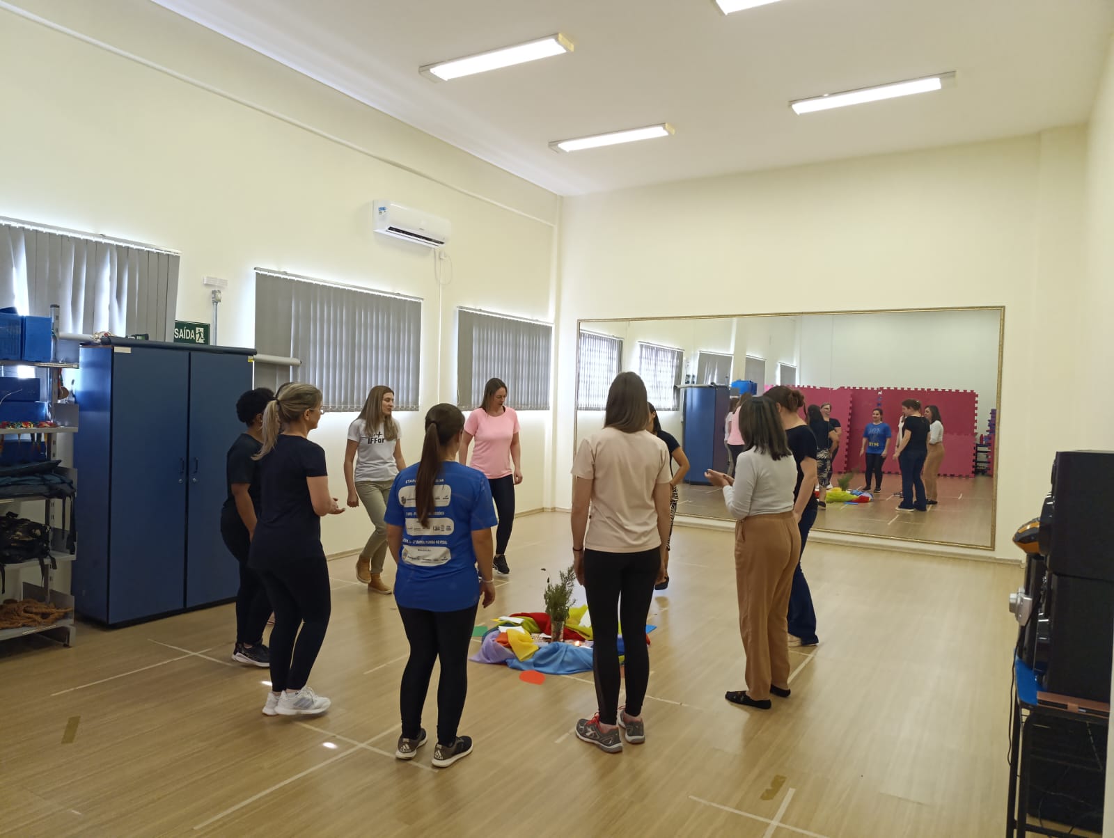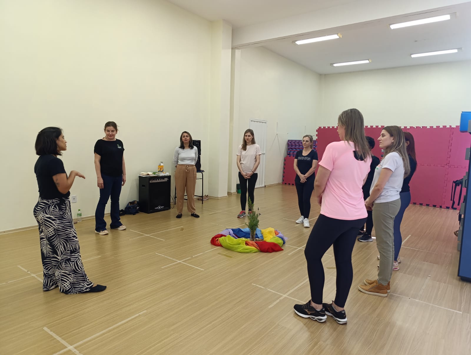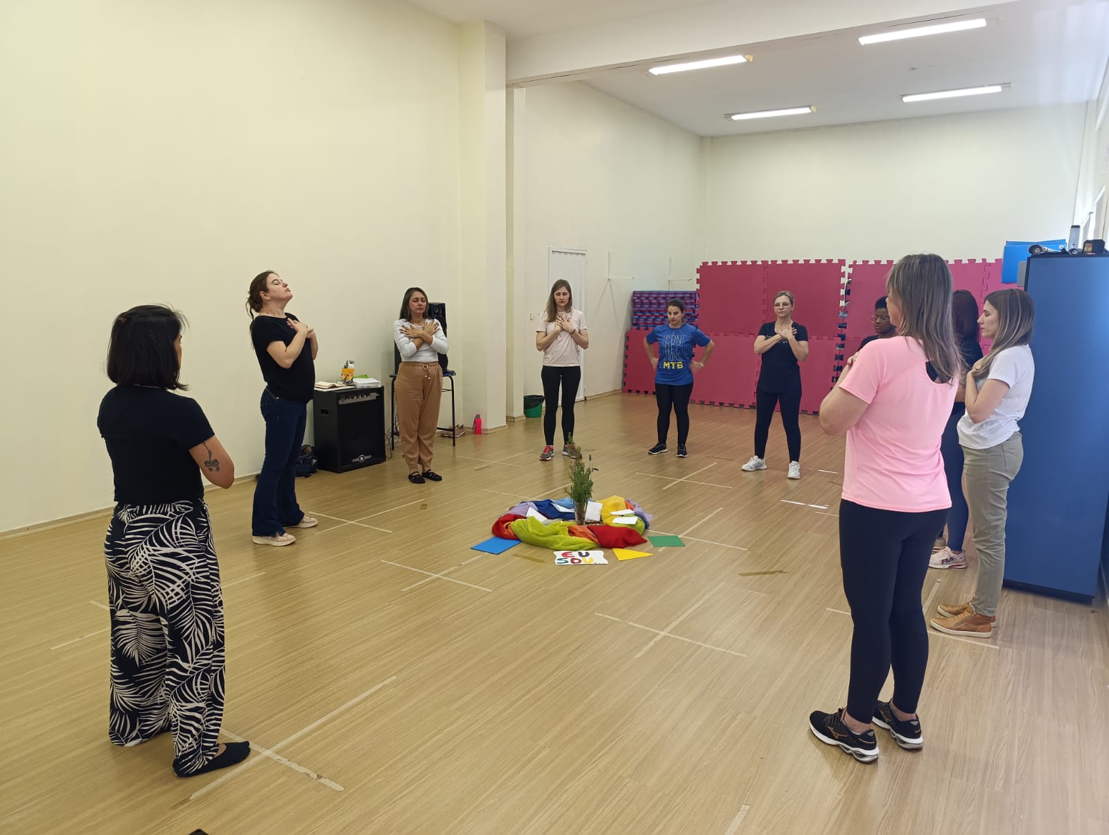 As atividades tiveram início na tarde do dia 22 de outubro, na sala de Dança do Ginásio de Esportes, com a oficina “Sinergia -Autocuidado e Autoconhecimento com a Dança: a beleza de Ser quem Eu Sou”, ministrada pela professora Mª. Laís Cavalheiro Rigo. Na ocasião, as participantes foram guiadas por vivências, em um espaço onde as Danças Circulares, a Biodança e a Dançaterapia se entrelaçaram em uma experiência de movimento livre, espontâneo e profundamente transformador.