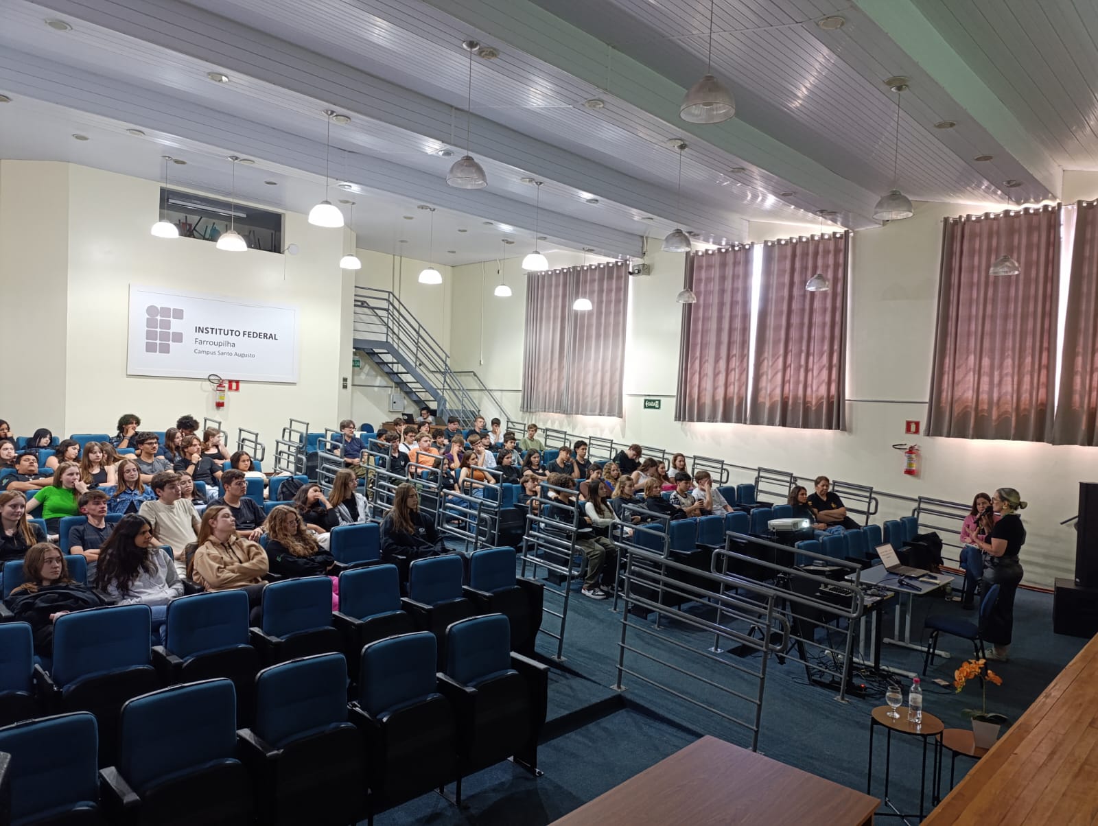 Os estudantes dos 1º e 2º anos dos cursos técnicos integrados ao ensino médio do IFFar – Campus Santo Augusto participaram na tarde do dia 18 de novembro, no auditório da instituição de uma palestra com o tema “Geração Conectada: desafios e riscos em um mundo tecnológico”, ministrada pela Diretora de Ensino e professora do Campus Panambi, Drª Sirlei Rigodanzo.