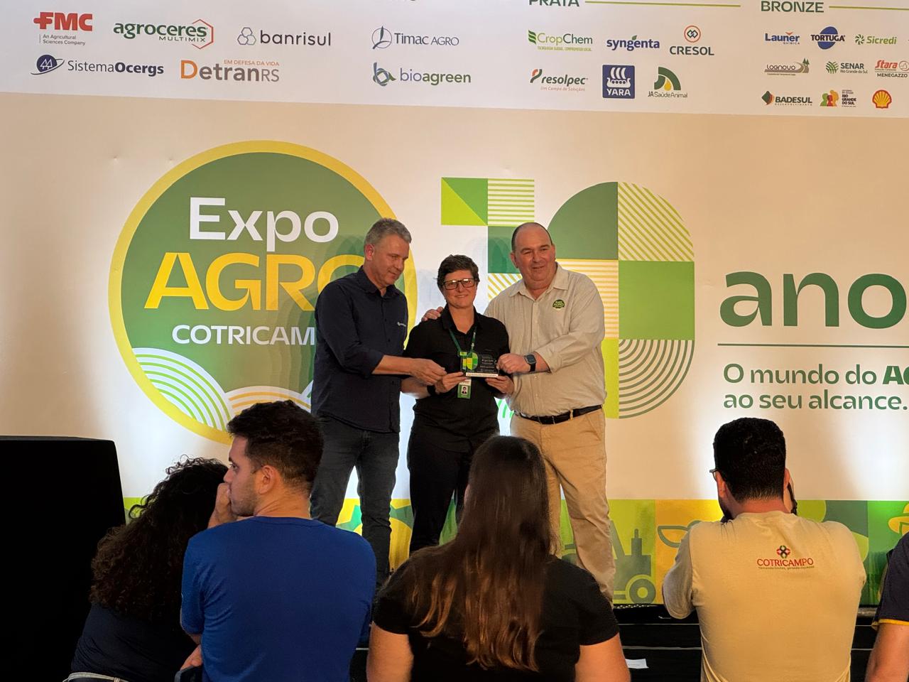 No sábado, a Diretora Geral Márcia Fink, recebeu em nome da instituição o Troféu Expoagro Cotricampo 10 anos, celebrando e prestando uma importante homenagem às entidades parceiras, empresas patrocinadoras desta edição e veículos de mídia que foram fundamentais na história da feira.