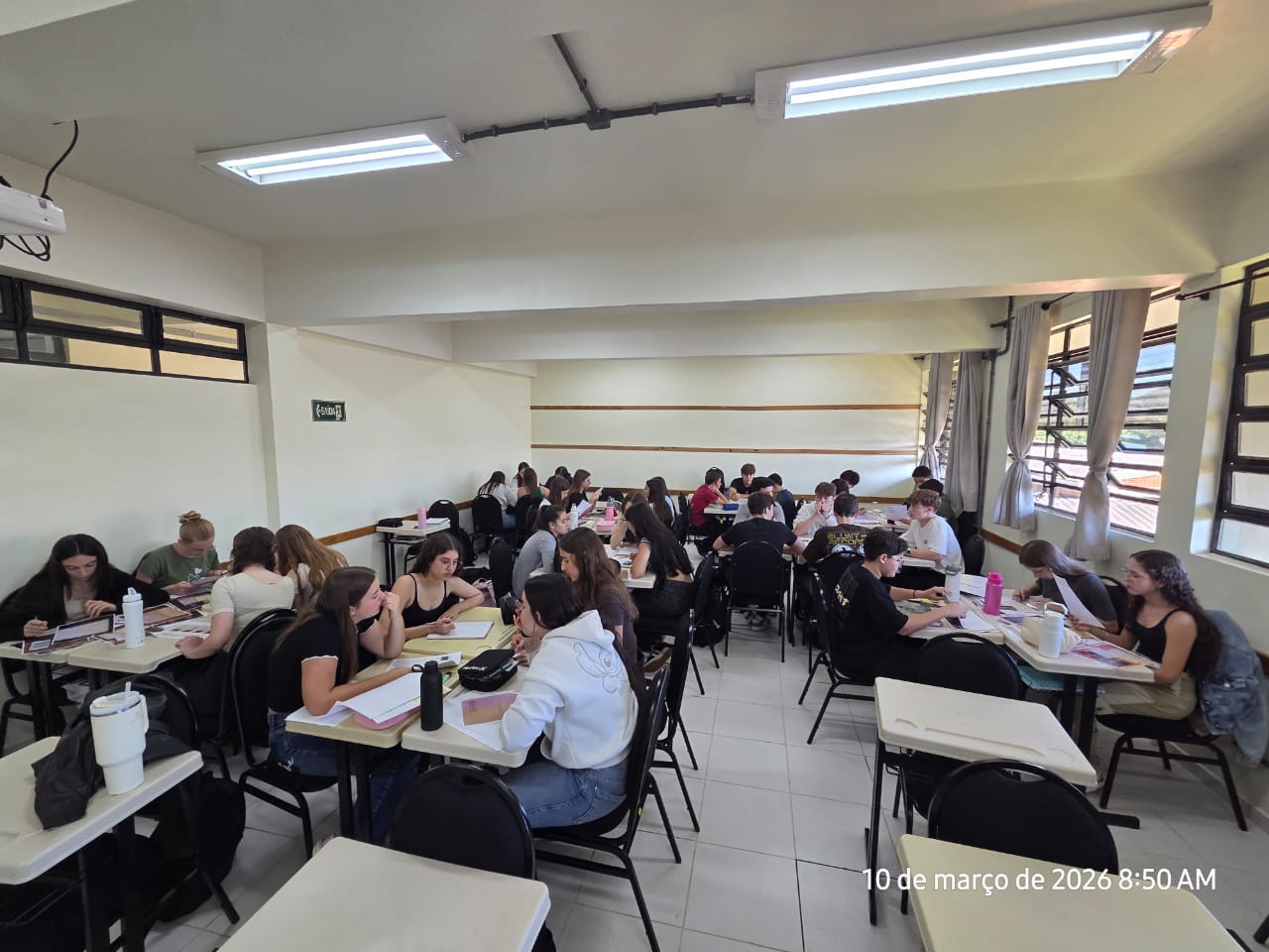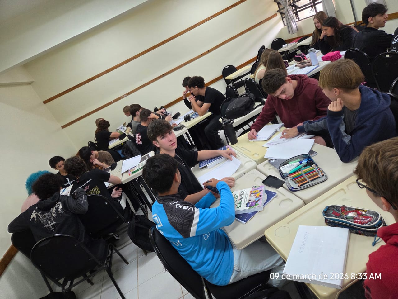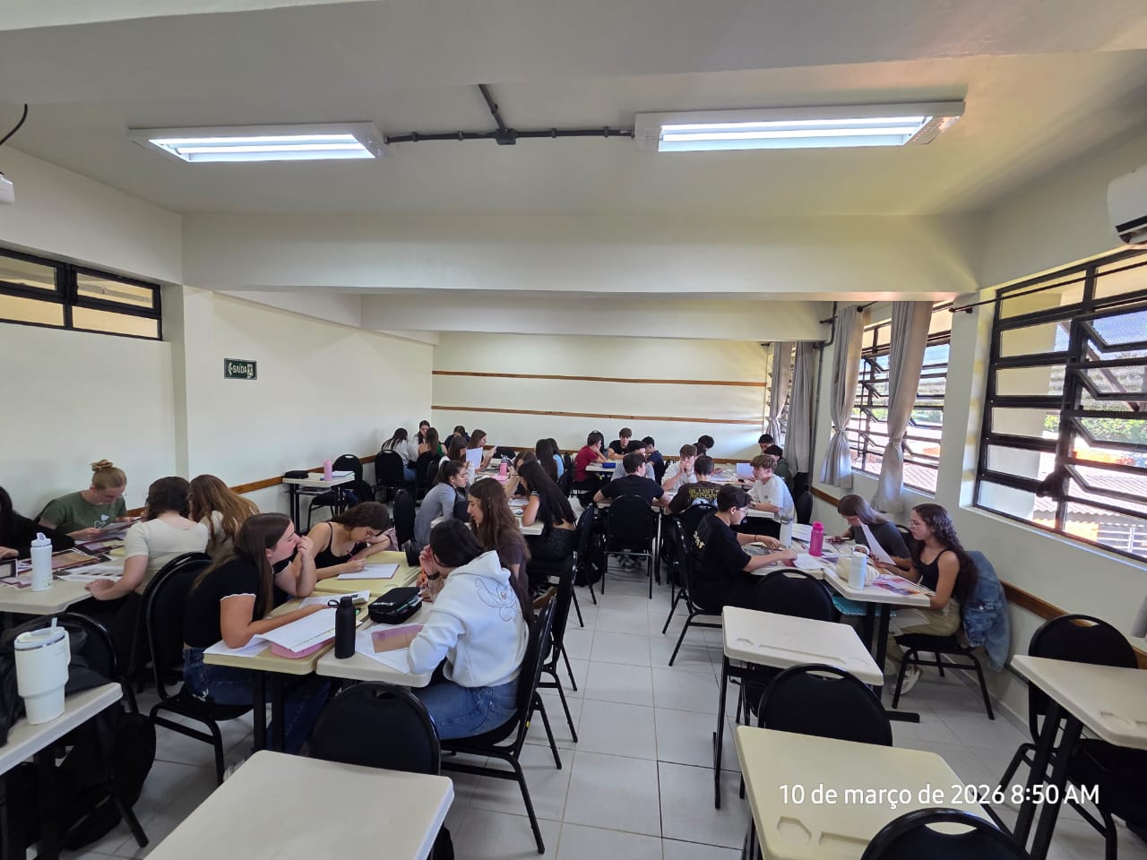 Os alunos do primeiro ano dos cursos técnicos em Administração e Informática realizaram uma atividade prática sobre Perícia Criminal na disciplina de Biologia, ministrada pela professora Camila Copetti, que transformou a sala de aula em um laboratório de investigação.