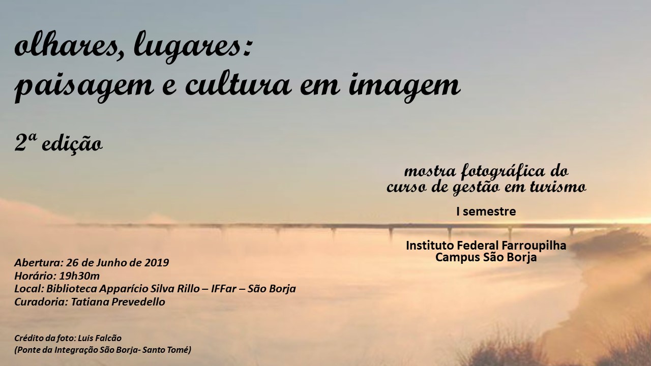 A mostra fotográfica do curso de Tecnologia em Gestão de Turismo do IFFar, é uma oportunidade de a comunidade são-borjense voltar-se para o potencial turístico do município, conhecendo por meio da fotografia aspectos da história, da paisagem, do patrimônio e da cultura local.