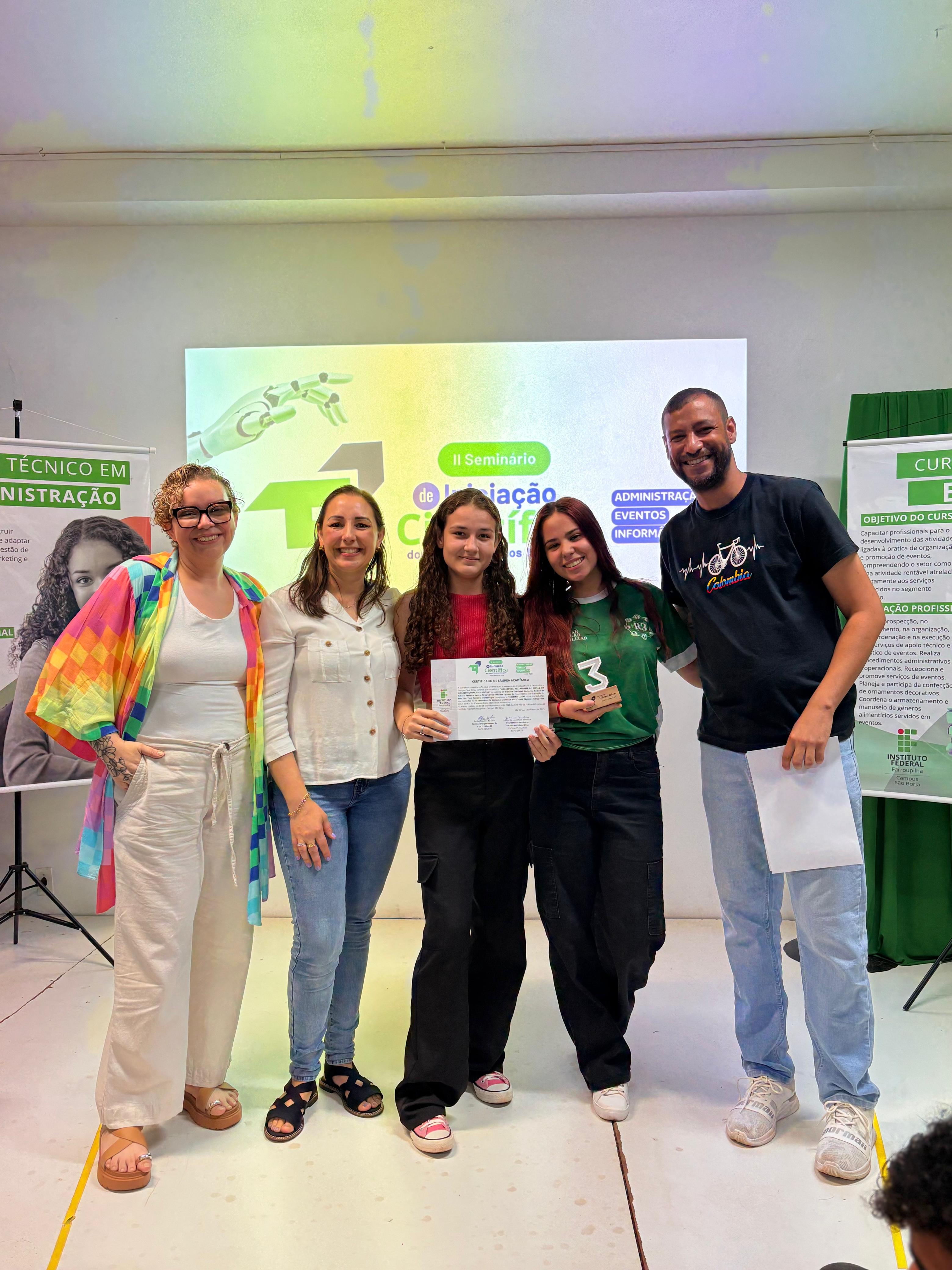 A estudante também destaca o impacto da experiência na formação acadêmica e pessoal. “Ter o nosso trabalho reconhecido no SICTI foi extremamente gratificante, motivador e emocionante. Foi o resultado de um esforço construído ao longo de todo o ano, com dedicação e estudo. Sermos premiados em primeiro lugar, sendo a primeira turma do curso técnico em Administração do campus, trouxe um sentimento enorme de orgulho”, avalia Alice.