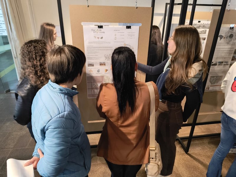 Assim, após o retorno às escolas e o alinhamento de demandas, ainda no mês de maio, a turma foi dividida em dois grupos: o primeiro deles deveria criar um mural de identificação para a EMEI Amor Perfeito e o segundo deveria propor novos mobiliários para um espaço didático da EMEF Paul Harris. Nos meses de junho e julho, os alunos desenvolveram propostas para os desafios, que foram apresentados às direções das duas escolas em encontro realizado no Campus Santa Rosa. Na oportunidade, além de conhecer as propostas, as professoras visitaram a exposição “Arquitetura para Ensinar”, que reúne os projetos de edificações escolares propostos pelos acadêmicos e que permanece no Espaço Cultural até 05/08/2025.