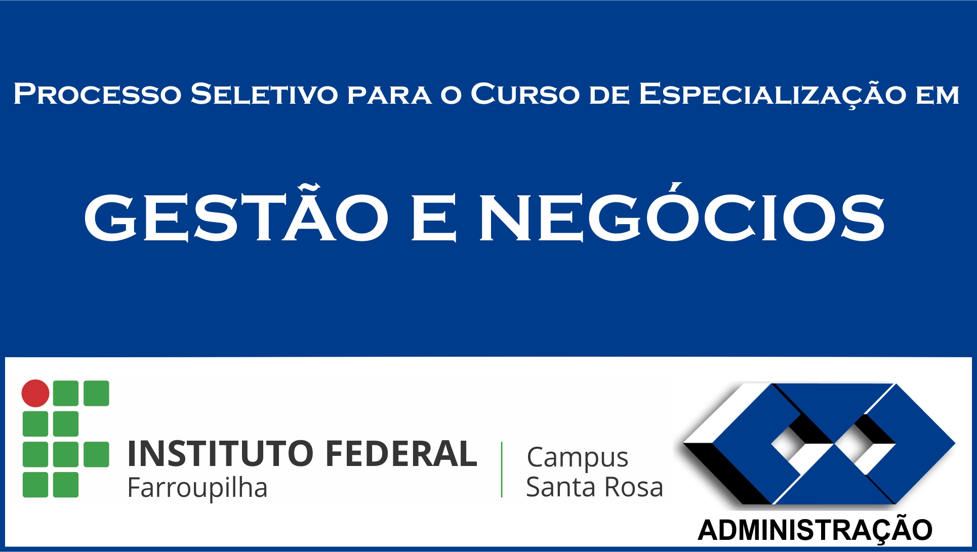 O Instituto Federal Farroupilha – Campus Santa Rosa está com inscrições abertas para o provimento de 25 vagas no Curso de Pós-Graduação Lato Sensu em Gestão e Negócios. As inscrições são gratuitas e estão abertas até o dia 19 de julho. Devem ser realizadas diretamente pelo link disponibilizado no Edital IF Farroupilha nº 271/2017, que pode ser acessado no site da instituição (www.iffarroupilha.edu.br/santa-rosa).