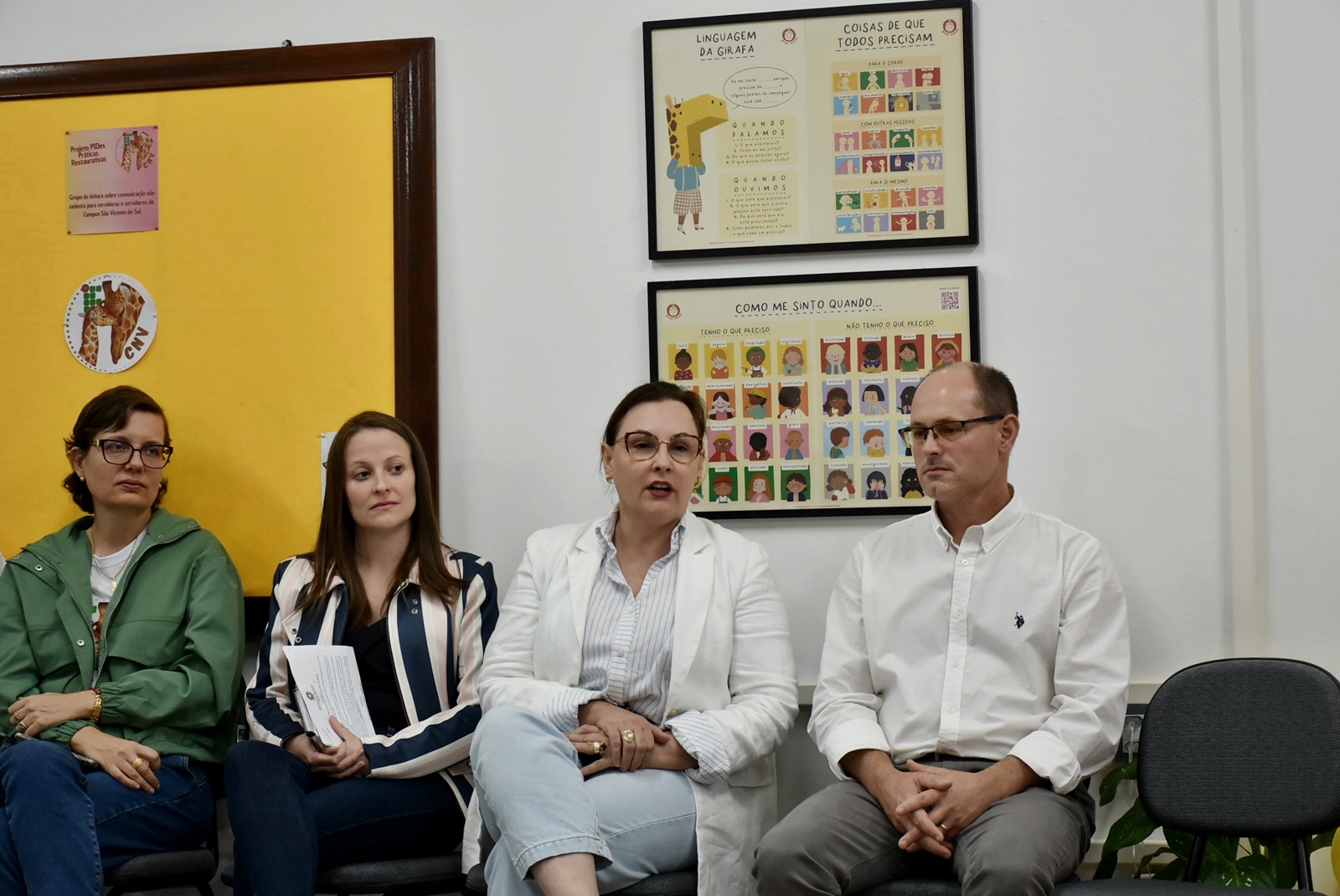 Em sua fala, Fernanda ressaltou o compromisso do grupo com a manutenção do propósito do espaço e destacou a importância simbólica da inauguração: “Estamos aqui celebrando um momento de acreditar... acreditar que é possível conduzir nossas relações com base na conexão, no respeito, na empatia e na harmonização dos conflitos. Esta sala representa um passo a mais em direção ao mundo que desejamos construir.”