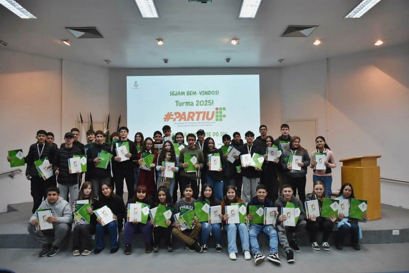 Na tarde desta quarta-feira, 25 de junho, o IFFar – Campus São Vicente do Sul realizou a aula inaugural do Programa Partiu IF, cursinho preparatório voltado a estudantes do Ensino Fundamental que desejam ingressar nos cursos técnicos integrados ao Ensino Médio dos Institutos Federais. Na ocasião, a instituição recepcionou os 38 estudantes selecionados, além dos/as professores/as e monitores/as que compõem a equipe responsável pela condução do programa.