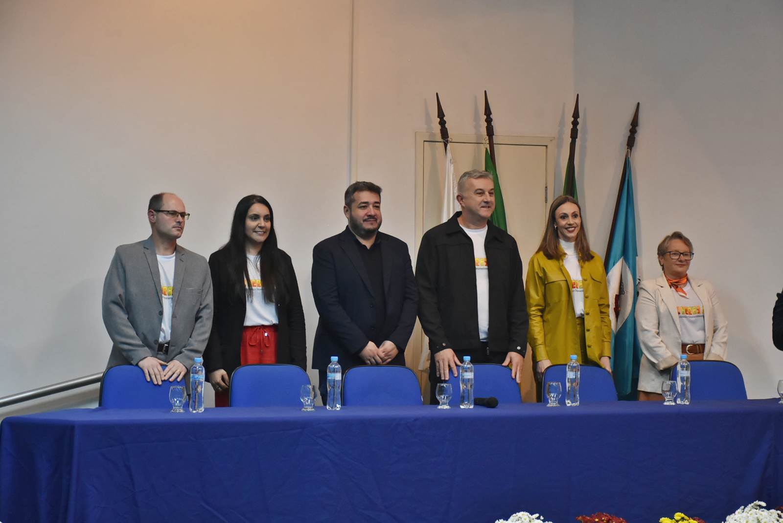 Na composição da mesa solene, estiveram presentes o prefeito municipal, Fernando da Rosa Pahin; a secretária de Desenvolvimento Social, Cidadania e Habitação, Rosmari Mossi Bissaco; o diretor-geral do Campus São Vicente do Sul, Paulo Roberto Cecconi Deon; a diretora de Ensino, Graciela Beck de Bitencourt dos Santos; o diretor de Pesquisa, Extensão e Produção, Fabiano Damasceno; e a coordenadora local do programa, profª Aline Martins.