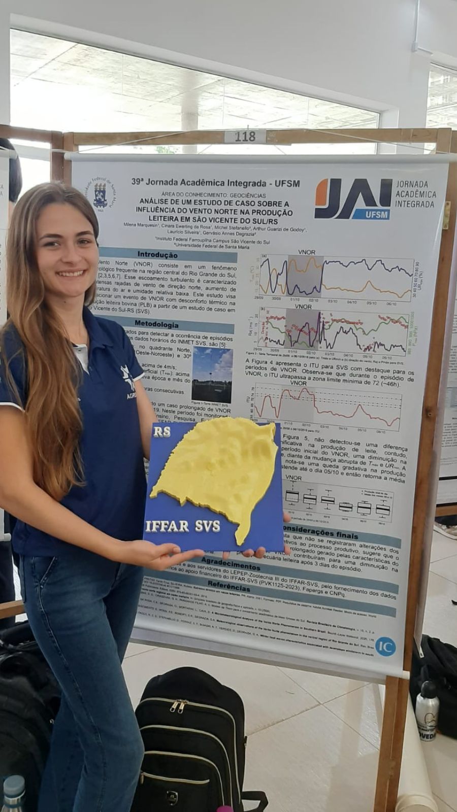 Com o tempo, a estudante passou a realizar as análises dos eventos de Vento Norte com base em dados meteorológicos disponíveis, além de atuar no monitoramento da lactação de vacas do Tambo (instalação projetada para a produção e o manejo do gado leiteiro) do campus São Vicente do Sul, para relacionar possíveis impactos do fenômeno na comunidade da região.