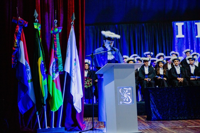 Na ocasião, compuseram a mesa de solenidade o Diretor do Campus Uruguaiana, Jhonathan Alberto dos Santos Silveira; a Coordenadora de Ensino, Pesquisa e Extensão, Louise Silva do Pinho; a Coordenadora do Curso Técnico em Administração, Anelise da Silva Cruz; e a Coordenadora do Curso Técnico em Informática, Diely Valim dos Santos. As turmas formandas também homenagearam seus patronos e paraninfos: a turma ADM31 teve como patrono o professor Anderson Mendes Rocha e como paraninfa Louise Silva do Pinho; a turma ADM32 escolheu como patronesse Thiara Ataíde Sodré e como paraninfo Anderson Mendes Rocha; a turma INFO31 teve como patrono o professor Thiago Cassio Krug e como paraninfo o professor Fabio Dias da Silva; e a turma INFO32 escolheu como patrono o professor Michel Michelon e como paraninfo o professor Anderson Mendes Rocha.