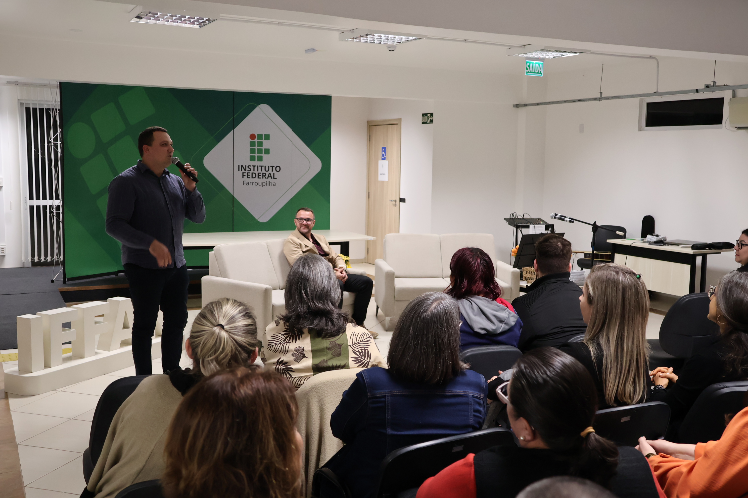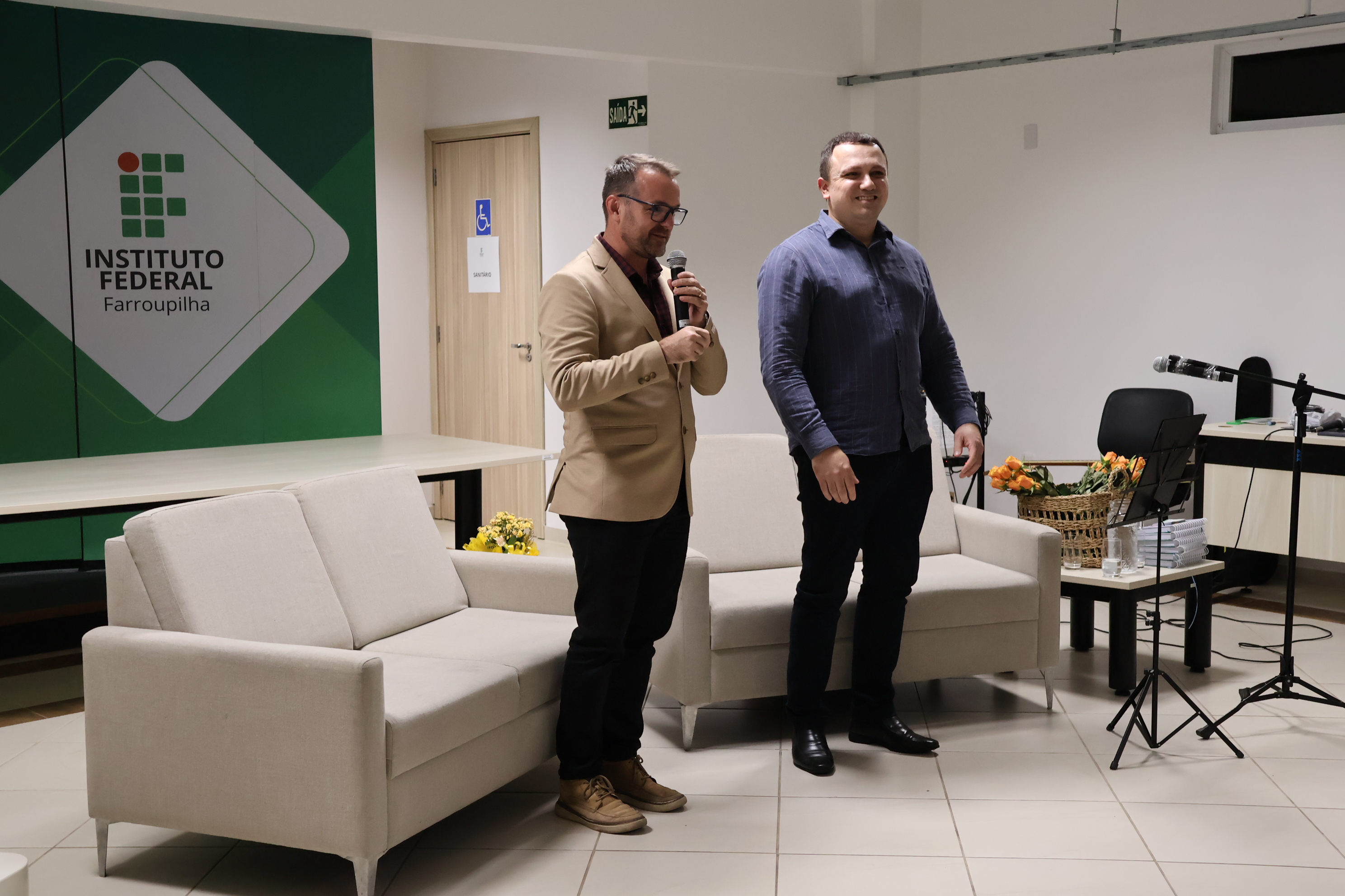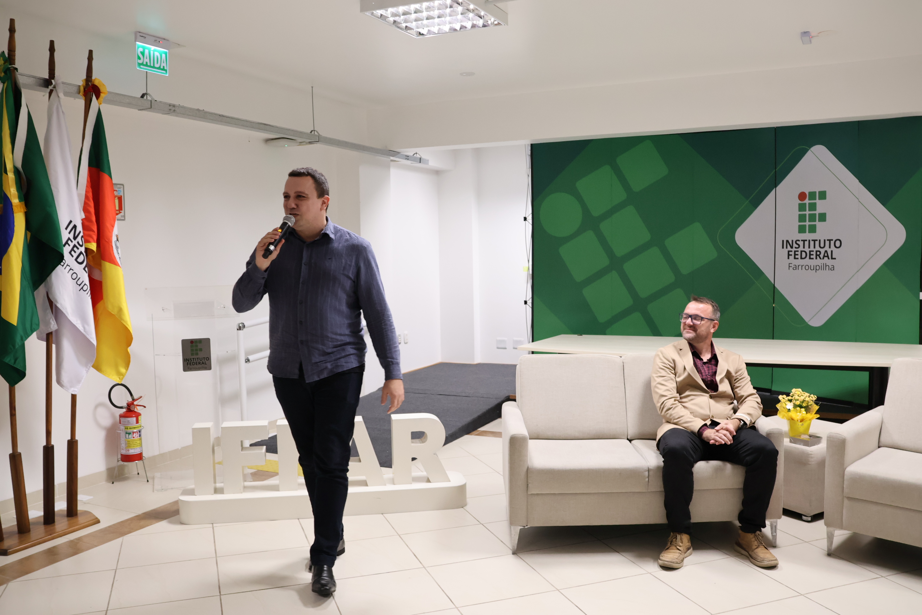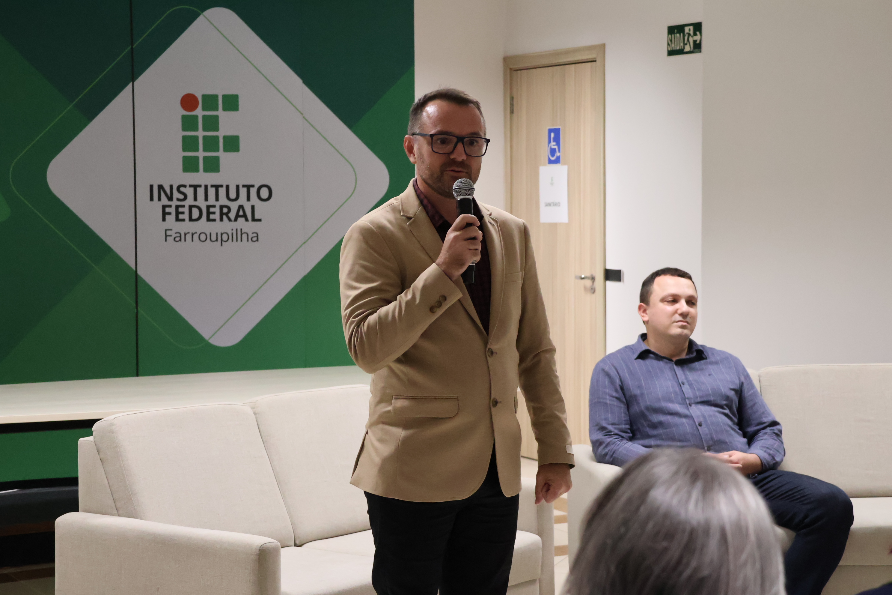 O professor Carlos Rodrigo Lehn, Pró-reitor de Desenvolvimento Institucional do IFFar, compartilhou com os estudantes aspectos de sua trajetória na educação e destacou o papel do ensino como política pública. Em sua fala, ressaltou: "A educação possui um papel central na vida das pessoas. Quando alguém tem acesso a uma educação de qualidade, ganha mais do que conhecimento, pois desenvolve senso crítico, autonomia, empatia e a capacidade de transformar a própria realidade".