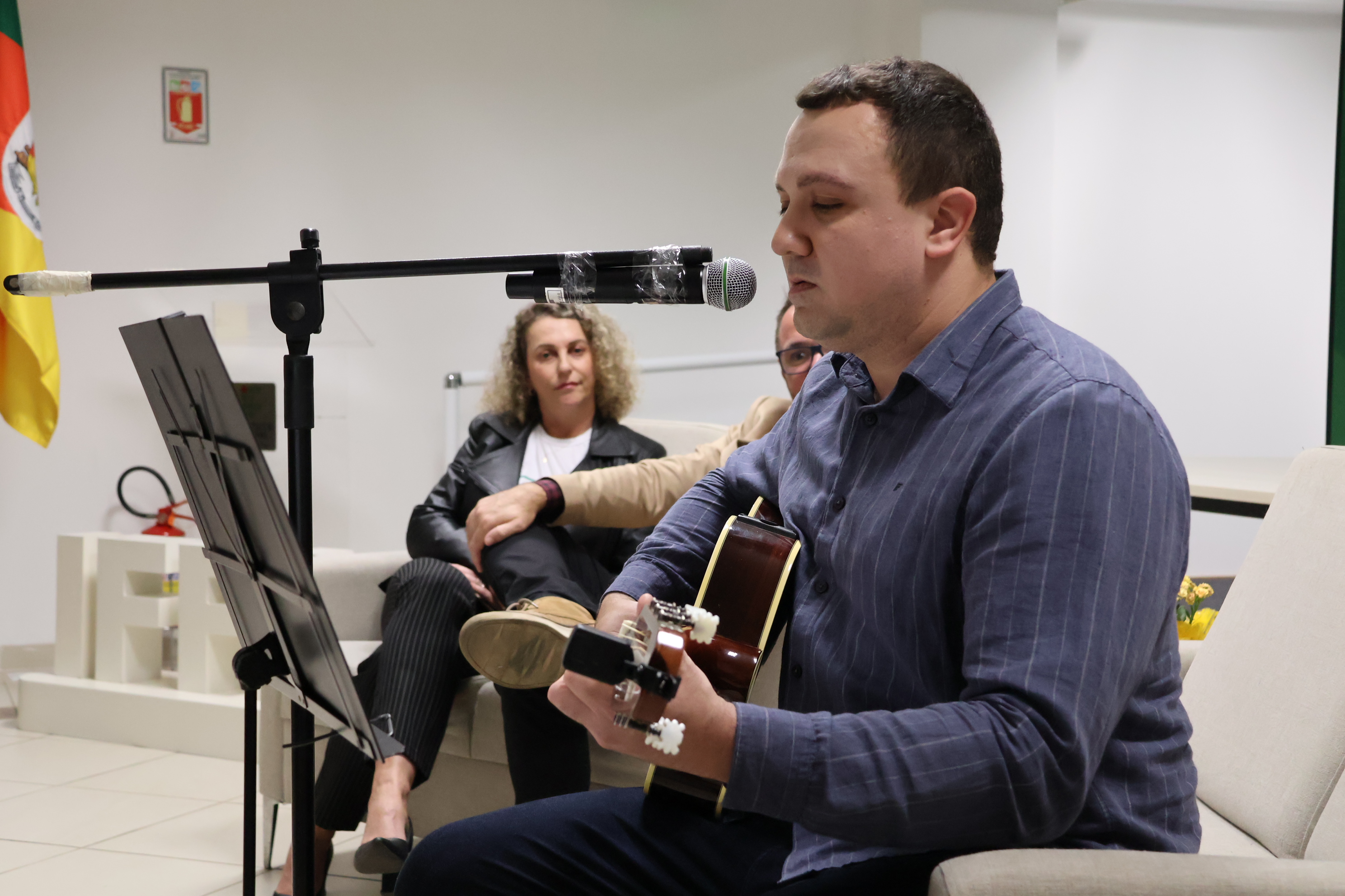 Rodrigo Carlotto, psicólogo do campus Júlio de Castilhos, apresentou algumas músicas durante sua fala ao público presente.
