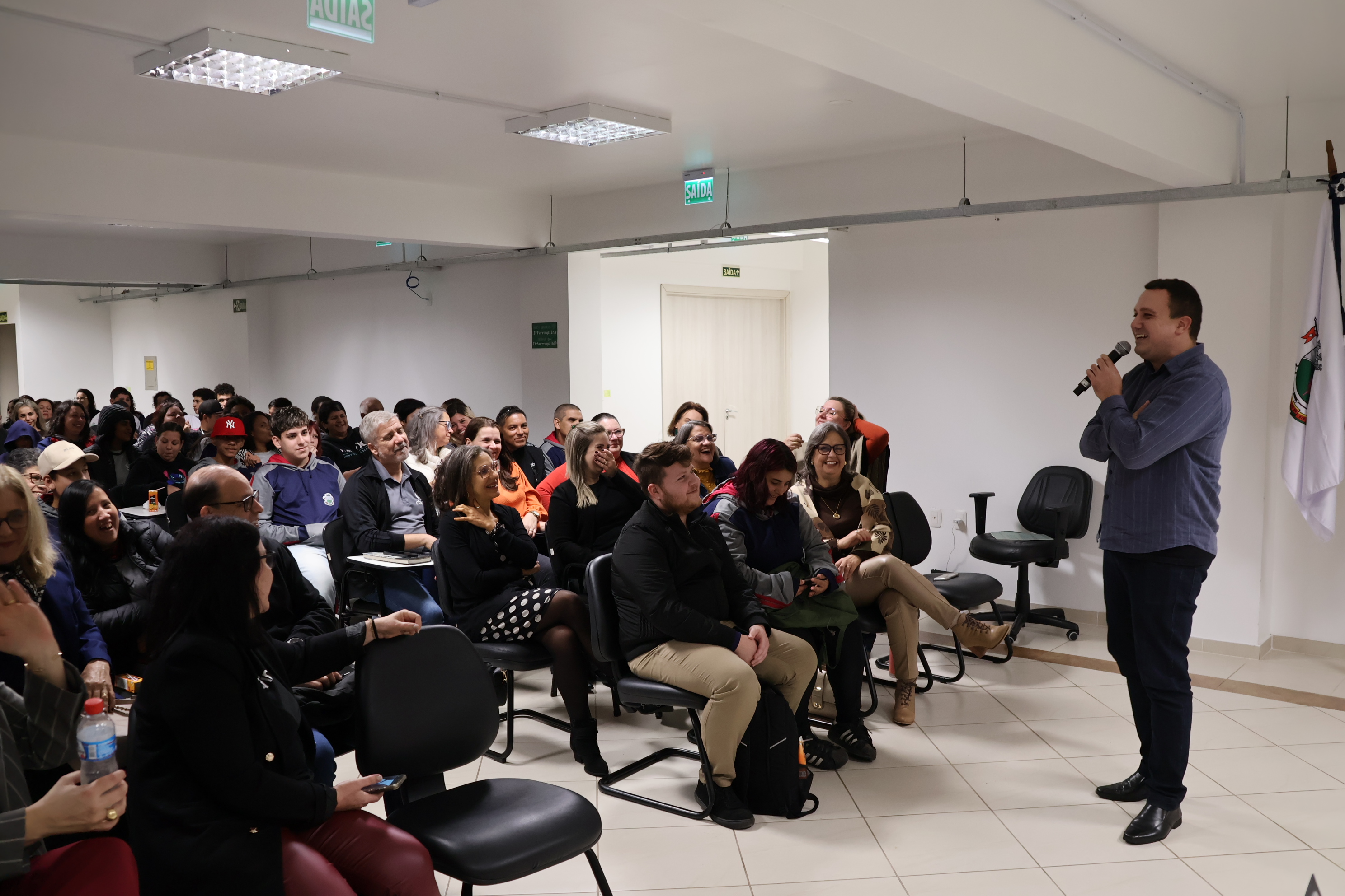 O psicólogo Rodrigo Carvalho Carlotto, do Campus Júlio de Castilhos, também participou da atividade. Em sua fala, destacou a importância do acolhimento emocional no ambiente educacional: "Cada um que está aqui carrega uma vivência única. O cuidado emocional também faz parte do processo de aprendizagem", observou. Além disso, a intervenção de Carlotto com os presentes foi intercalada com reflexões sobre vivências na EJA e músicas, proporcionando um ambiente acolhedor aos estudantes.
