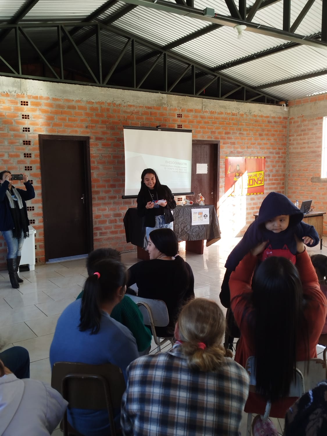 A estudante Gabriele Cargnin Mazzaro reforçou que a oficina proporcionou não só reflexão, mas também a vivência prática dos conteúdos estudados: “A conversa foi aberta, com trocas de experiências e reflexões sobre o impacto do uso das tecnologias digitais no nosso bem-estar. Por meio de atividades como desenhos com as crianças e uma encenação educativa sobre o Chapolin, percebemos a interação e o divertimento do público. Foi um momento importante de conscientização para todos, adultos e crianças, sobre o equilíbrio entre o mundo digital e o real”.