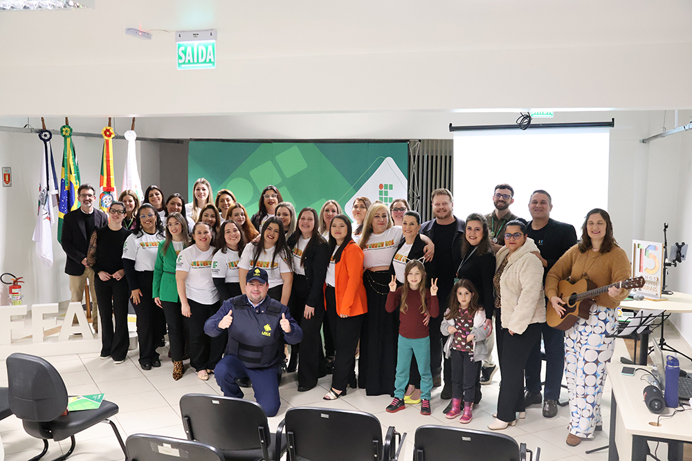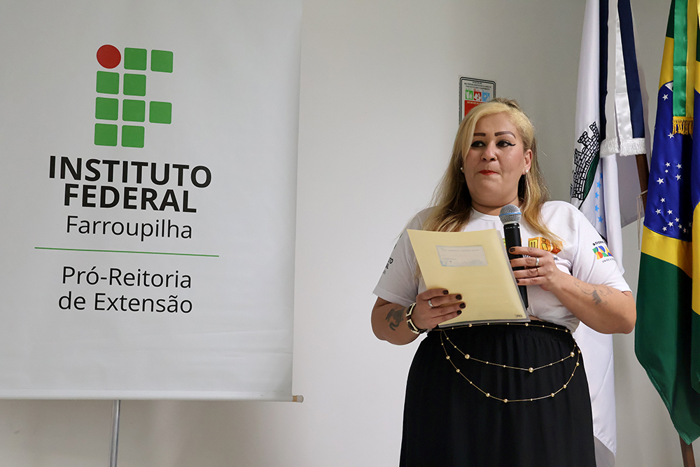 A cerimônia reuniu autoridades institucionais, como o pró-reitor de Extensão, Getúlio Jorge Stefanello, que representou a reitora Nídia Heringer, além de gestores e coordenadores ligados ao programa. O momento cultural ficou por conta de Daiana de Freitas Carpenedo, diretora de Gestão de Pessoas do IFFar e vocalista da banda Chased.