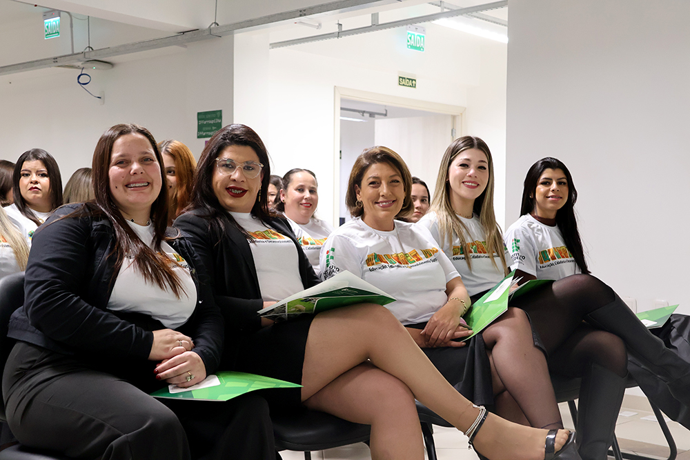 A turma também reafirmou o compromisso do programa com a diversidade. A presença de Stéfany Rodrigues Marafiga, mulher trans e trabalhadora de um escritório de advocacia da cidade, mostrou que a iniciativa vai além da capacitação profissional, criando espaços de acolhimento e pertencimento. Feliz com a certificação, Stéfany contou como o projeto cruzou seu caminho: “Descobri o Mulheres Mil através do CRAS, porque sempre estive envolvida em projetos sociais. Já sou formada em marketing, empreendedorismo e mídias digitais, mas senti que precisava acrescentar mais uma formação. No início, pensei em desistir, era cansativo. Mas eu havia incentivado outras seis mulheres a se inscreverem. Então, me senti responsável. Muitas vezes uma ligava para a outra, uma buscava a outra em casa, e assim seguimos juntas até o fim. Ninguém soltou a mão de ninguém”.