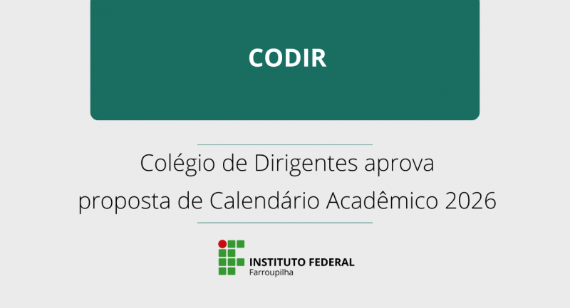 O Colégio de Dirigentes do IFFar (Codir) aprovou uma proposta de Calendário Acadêmico para o ano letivo de 2026 durante sua 2ª Reunião Extraordinária realizada nesta quarta-feira (10). Agora, a proposta será analisada pelo Conselho Superior (Consup). Confira as principais datas.