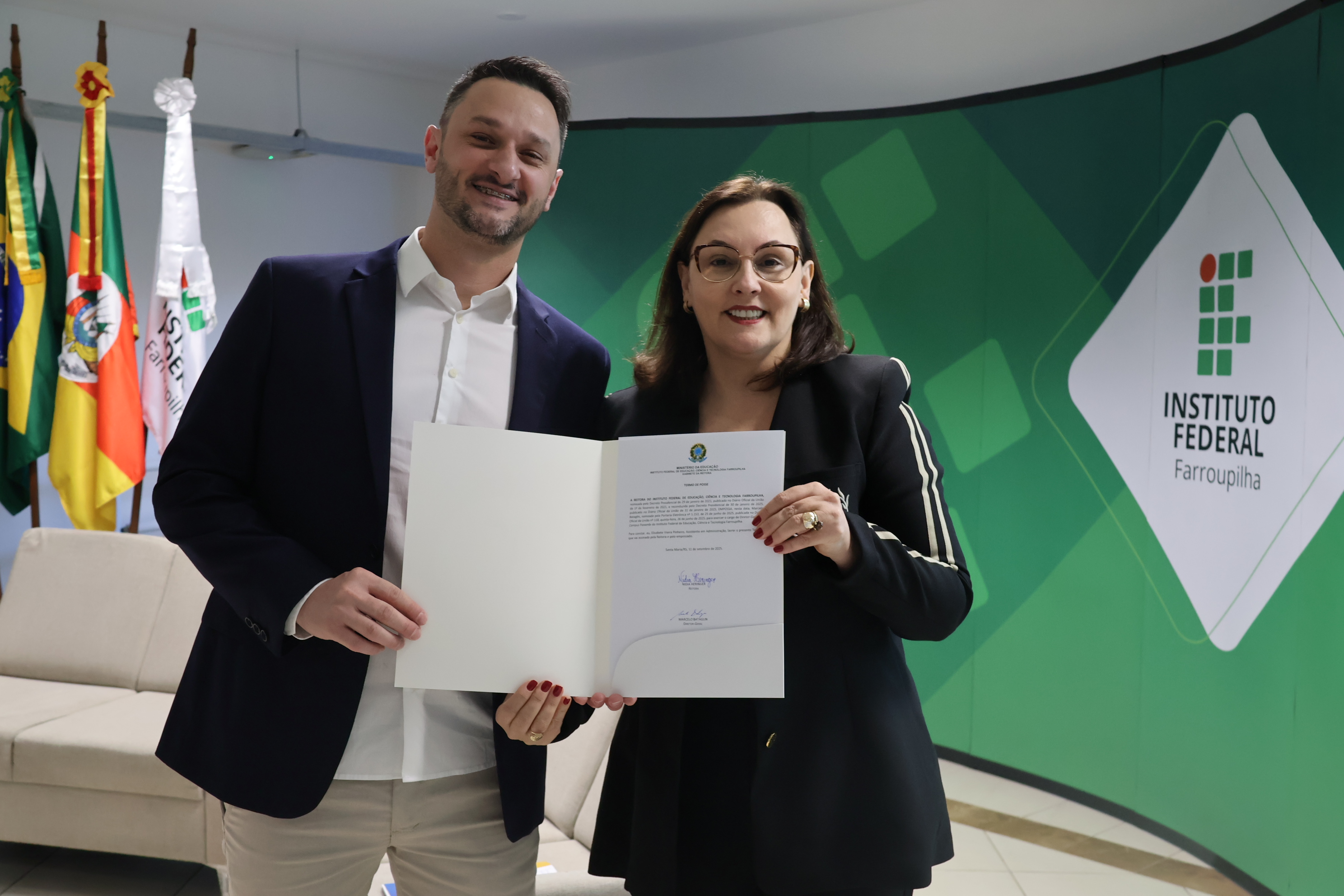 No mês passado, a professora Nídia Heringer foi oficialmente reconduzida ao cargo de reitora do IFFar. A cerimônia teve a participação do ministro da Educação, Camilo Santana, autoridades, imprensa, servidores e cerca de 400 estudantes.
