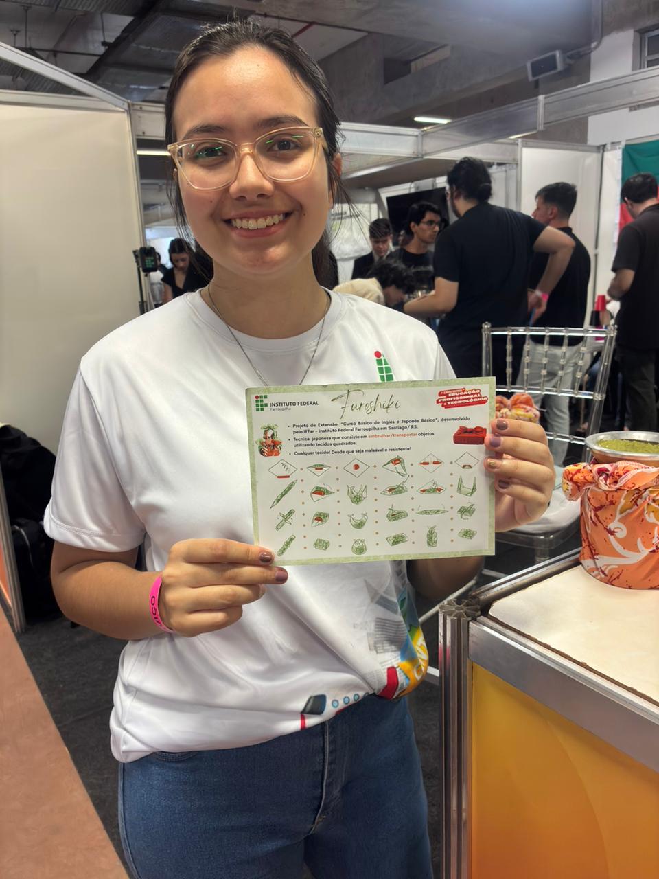 - 8. Da Página à Prática: Apostila Interdisciplinar sobre o Japão e o Furoshiki como Recurso Cultural, Social e Sustentável. Campus Jaguari. Aluna apresentadora: Luíza Oliveira Vianna Silva. Professor coordenador: Lucas Martins Flores.
