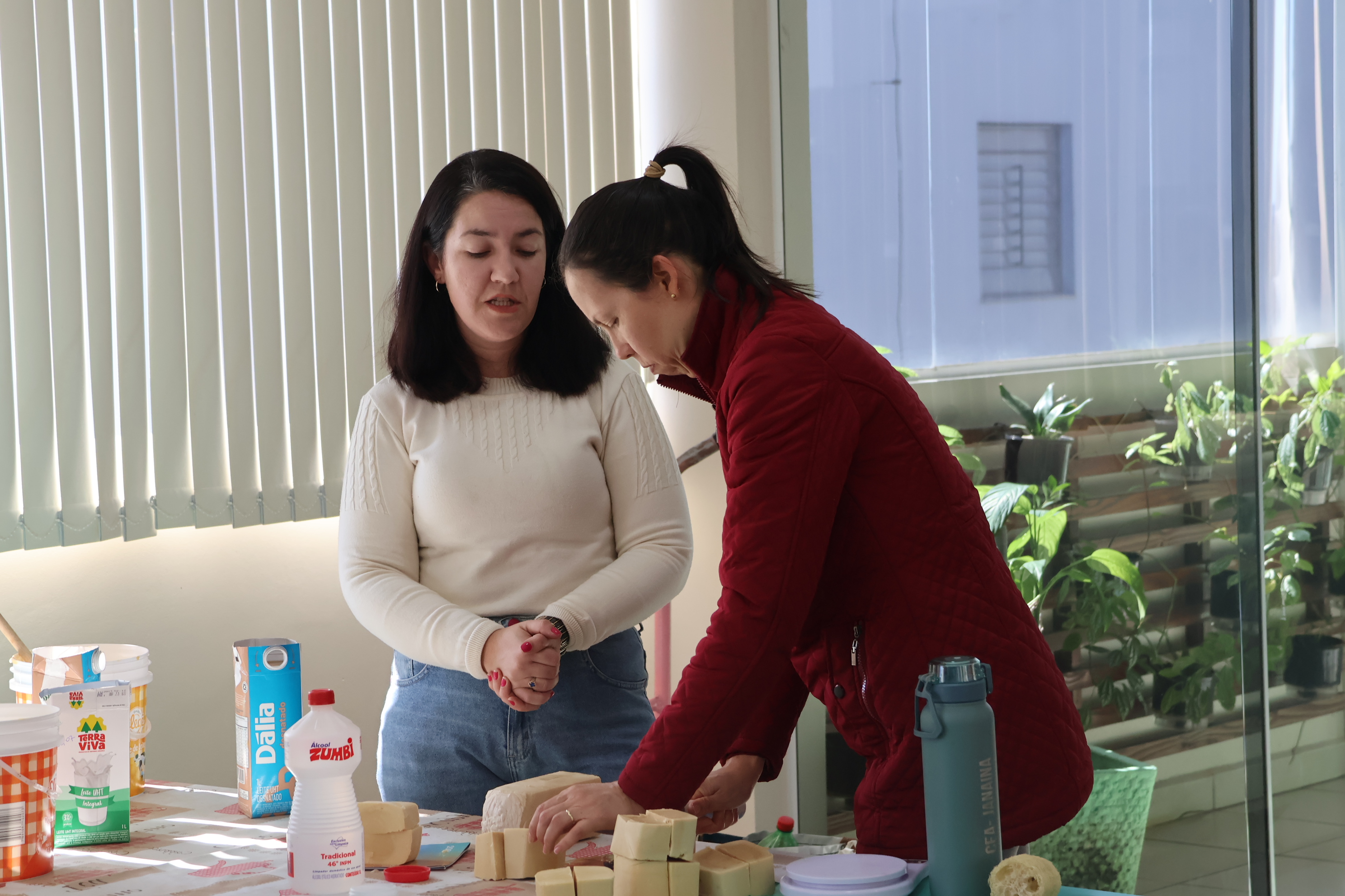 A Oficina Artesanal de Sabão Sustentável, realizada nesta quarta-feira (8), no refeitório da Reitoria do IFFar, é uma das atividades programadas para o Mês do(a) Servidor(a) Público(a). O workshop foi ministrado pela servidora Janaina Saydelles Volpatto.