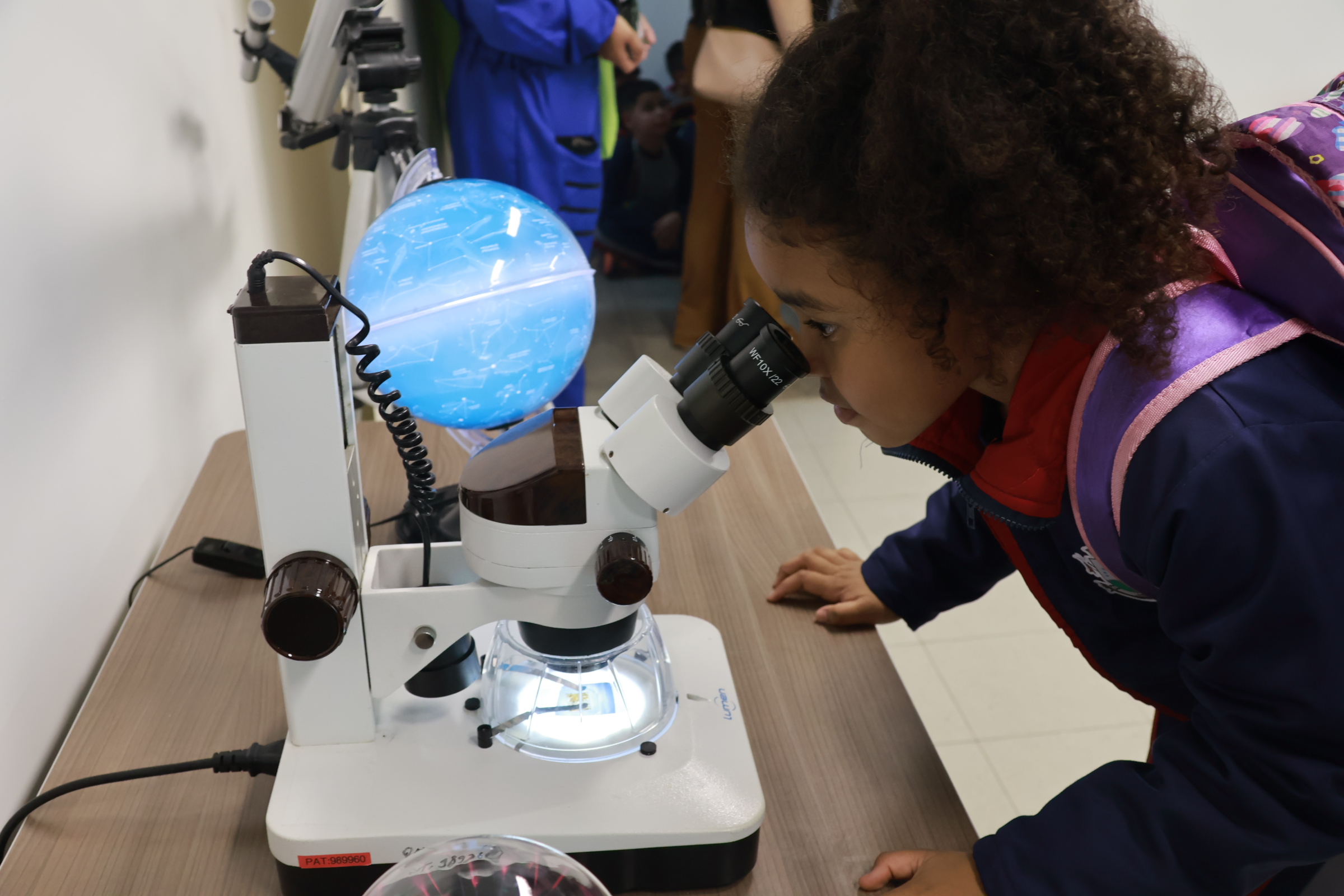 No pátio do Tecnoparque, as crianças observaram a Lua por telescópios e conheceram detalhes do astro, em um momento marcado pela surpresa e pelo encantamento. “Foi uma viagem do macrocosmos ao microcosmos em poucas horas”, relatou o idealizador do projeto, o servidor do IFFar, Fabrício Colvero. “Eles olharam a Lua pelo telescópio e, depois, observaram no microscópio uma lâmina de meteorito. Ver o brilho no olhar dessas crianças é gratificante. A sociedade precisa de iniciativas que tornem a ciência palpável e próxima das pessoas”, complementou.