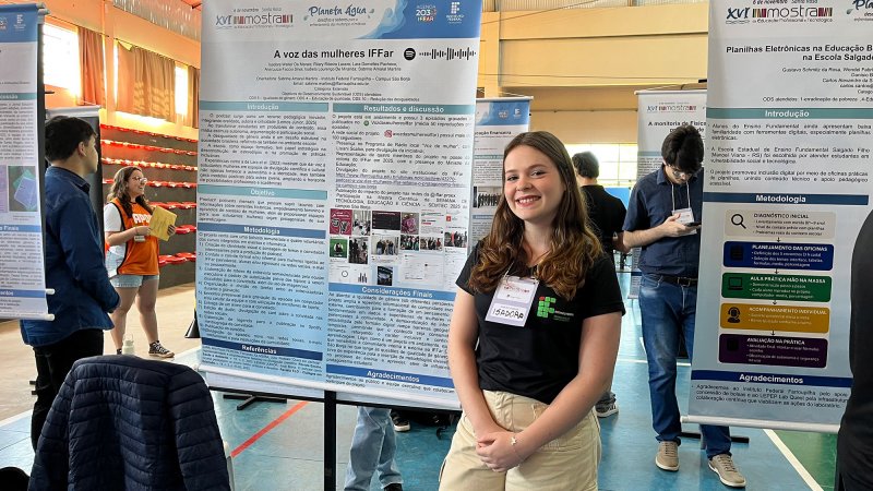 Já Isadora Welter de Morais, estudante do curso Técnico em Eventos integrado ao ensino médio do Campus São Borja, atua no projeto “A Voz das Mulheres IFFar”, que conta com orientação da professora Sabrine Amaral Martins, que promove ações de diálogo, formação e produção de podcasts sobre vivências femininas na comunidade acadêmica e regional.