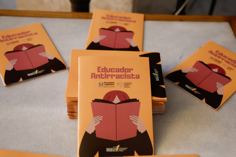 Foto: detalhe da cartilha "Educador Antirracista" durante lançamento na ALRS (crédito: Agência de Notícias da ALRS)