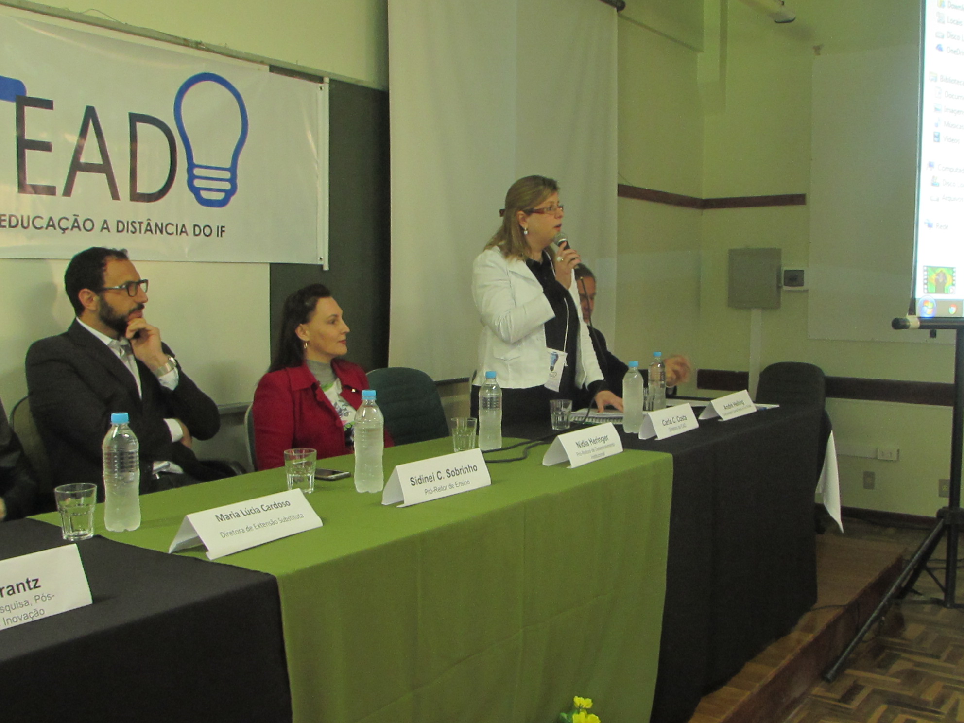 Carla Costa também falou sobre permanência e êxito nos cursos EAD durante a primeira mesa de debates do evento. Na mesma manhã, o pró-reitor de Ensino do IF Farroupilha, Sidinei Cruz Sobrinho, fez um relato crítico da história de mais de 24 séculos de educação profissional e tecnológica. Acompanhe o portal do IF Farroupilha para saber mais sobre estas falas.