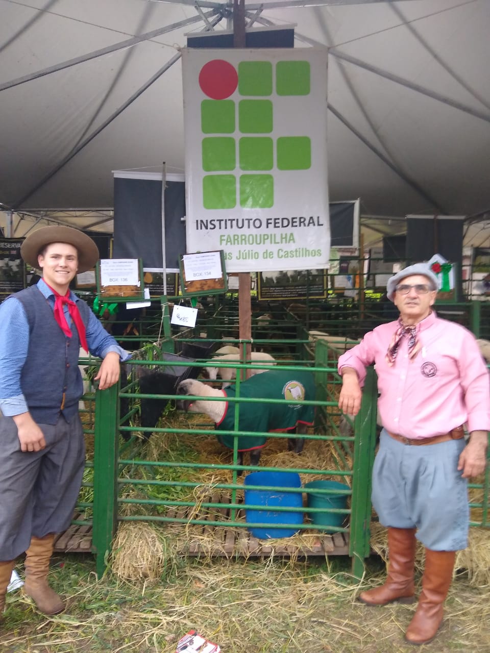 O IF Farroupilha - Campus Júlio de Castilhos participou da XXXV FENOVINOS, no período de 17 a 21 de maio de 2023, realizada em Uruguaiana, com a Borrega I.F.F.J.C. Tatuagem 257, animal dentes de leite com 10 meses de idade e 80 kg de peso vivo, sendo um ovino exemplar PO da Raça Hampshire Down e que conquistou o título de quarto Prêmio da Categoria Borrega Menor (categoria 10 a 12 meses de idade). Os animais participaram sob a responsabilidade do professor Rui Pilar e do aluno (monitor do LEPEP de Ovinocultura) Felipe Braz do segundo ano do Curso Técnico em Agropecuária Integrado ao Ensino Médio.