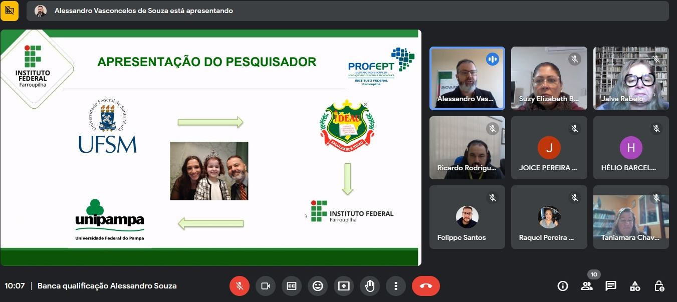 O Programa de Pós-Graduação em Educação Profissional e Tecnológica - ProfEPT - Mestrado profissional em rede de Jaguari, teve no período de 16 de junho a 14 de julho a qualificação de mais cinco projetos de dissertação e também de mais uma defesa de dissertação e de produto educacional, vinculados ao programa.