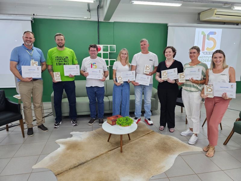 Foto: servidores do Campus Panambi recebem certificados pelos 15 anos de atuação na Rede Federal