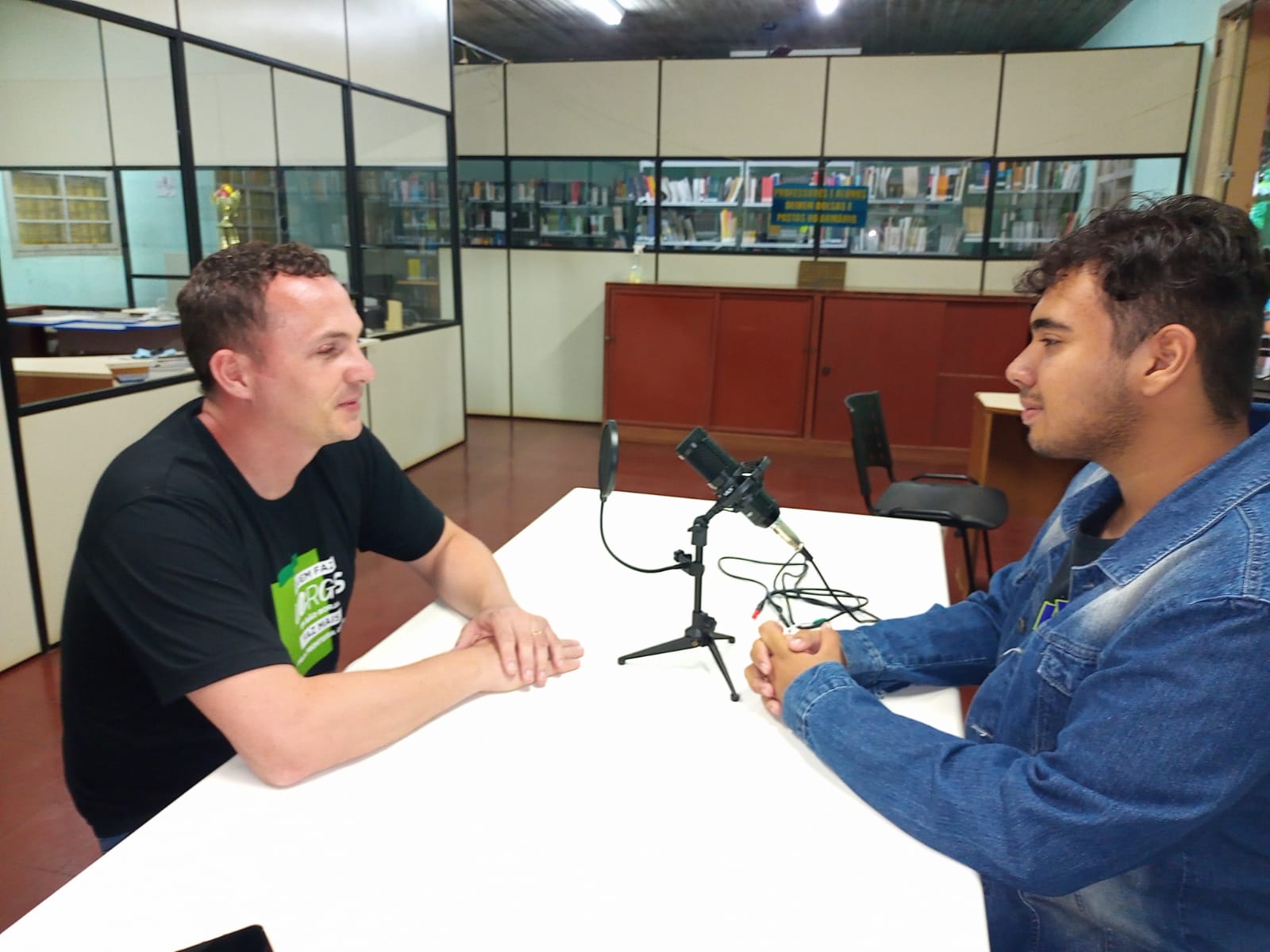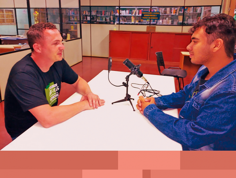 Foto: estudante grava entrevista para podcas A Voz do IFFar pelo Planeta no Campus São Borja