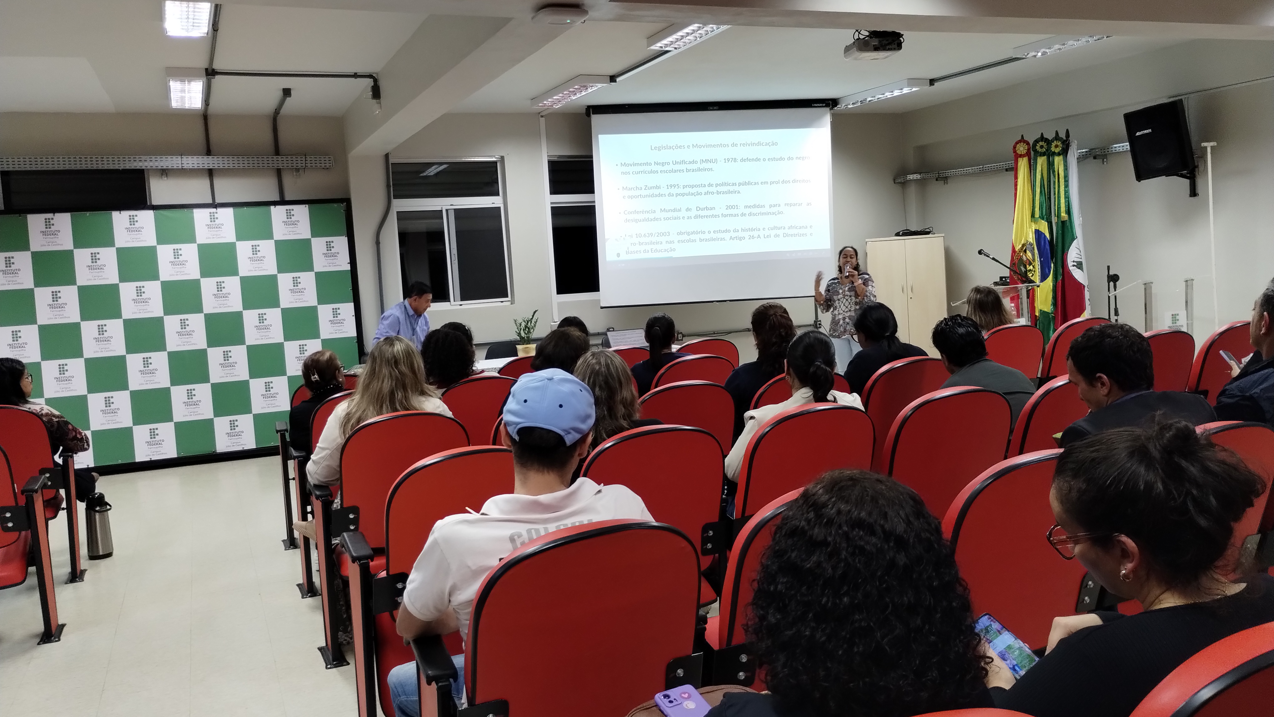 A palestrante também alertou para o caráter eurocentrado dos currículos escolares e o racismo estrutural presente nas instituições de ensino e na sociedade brasileira. “Vivemos em um país que foi formado a partir da escravidão, e esse passado estruturou uma sociedade desigual, em que o racismo está presente em todas as esferas”, afirmou.