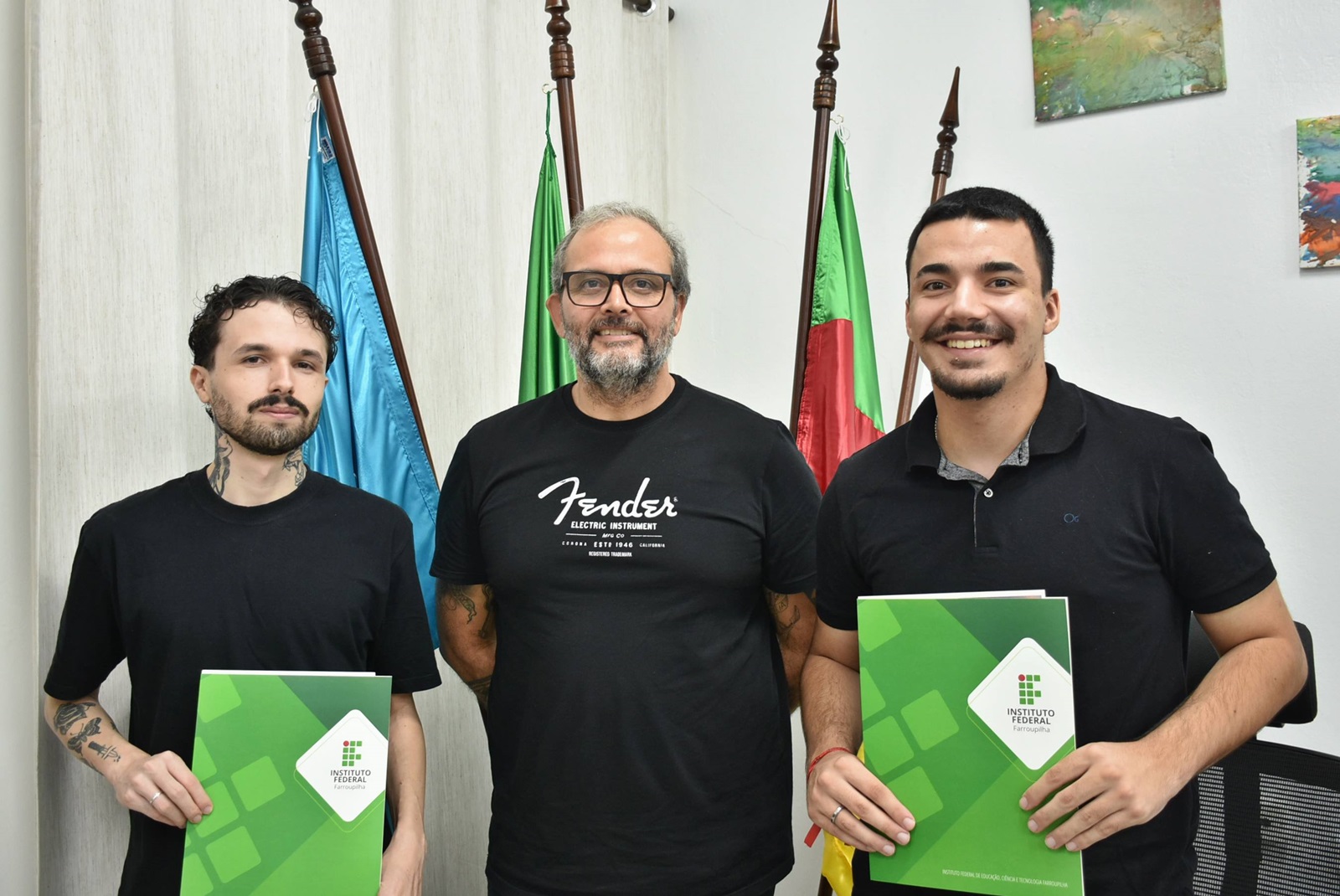 A cerimônia foi realizada na sala da Direção-Geral do campus e contou com a presença do diretor-geral, Paulo Roberto Cecconi Deon, do coordenador do curso, professor Daniel Boemo, e da chefe de gabinete, responsável pela condução do ato. Familiares dos formandos também estiveram presentes, acompanhando a solenidade e celebrando esse importante momento na trajetória acadêmica dos novos profissionais.