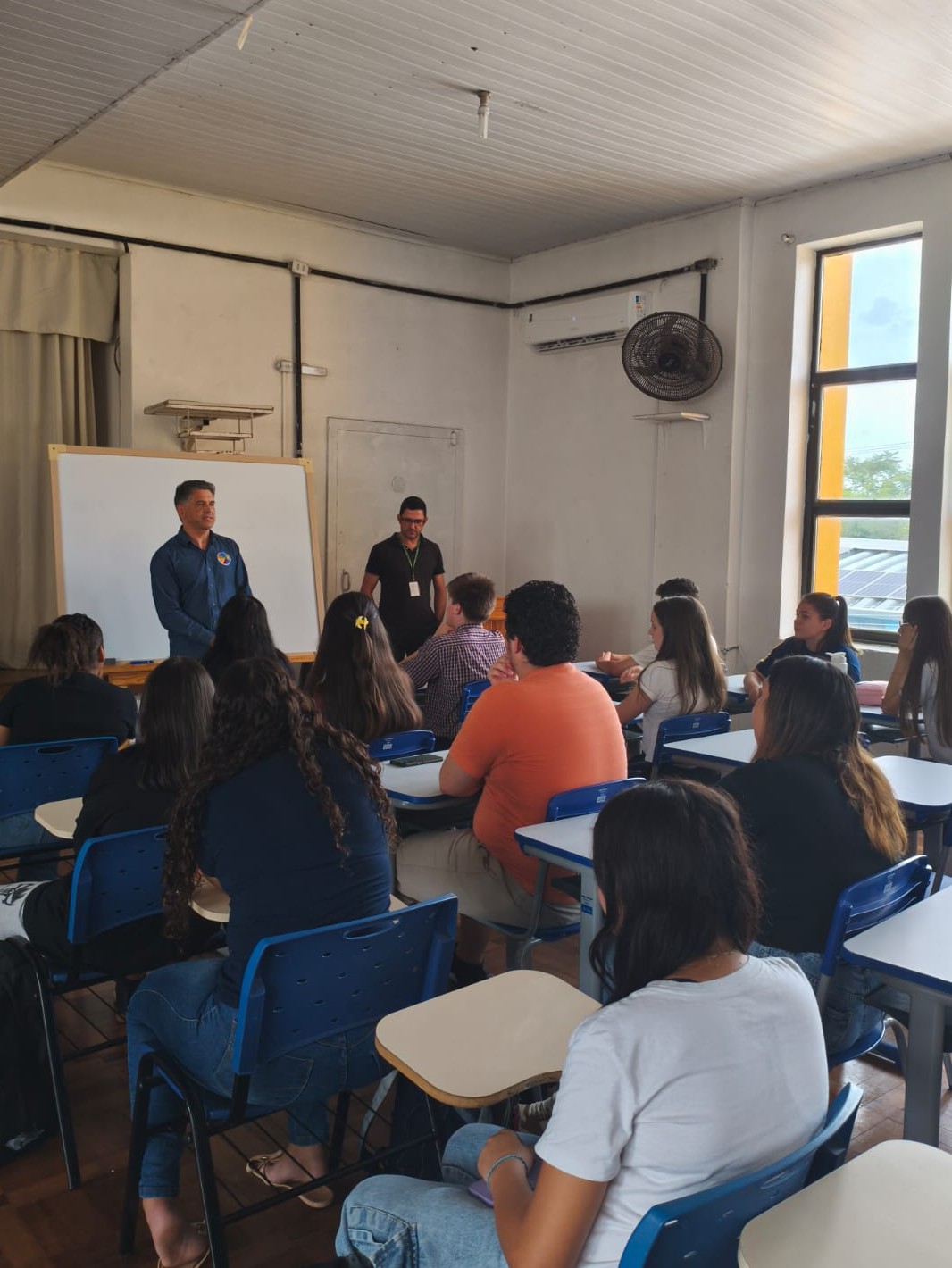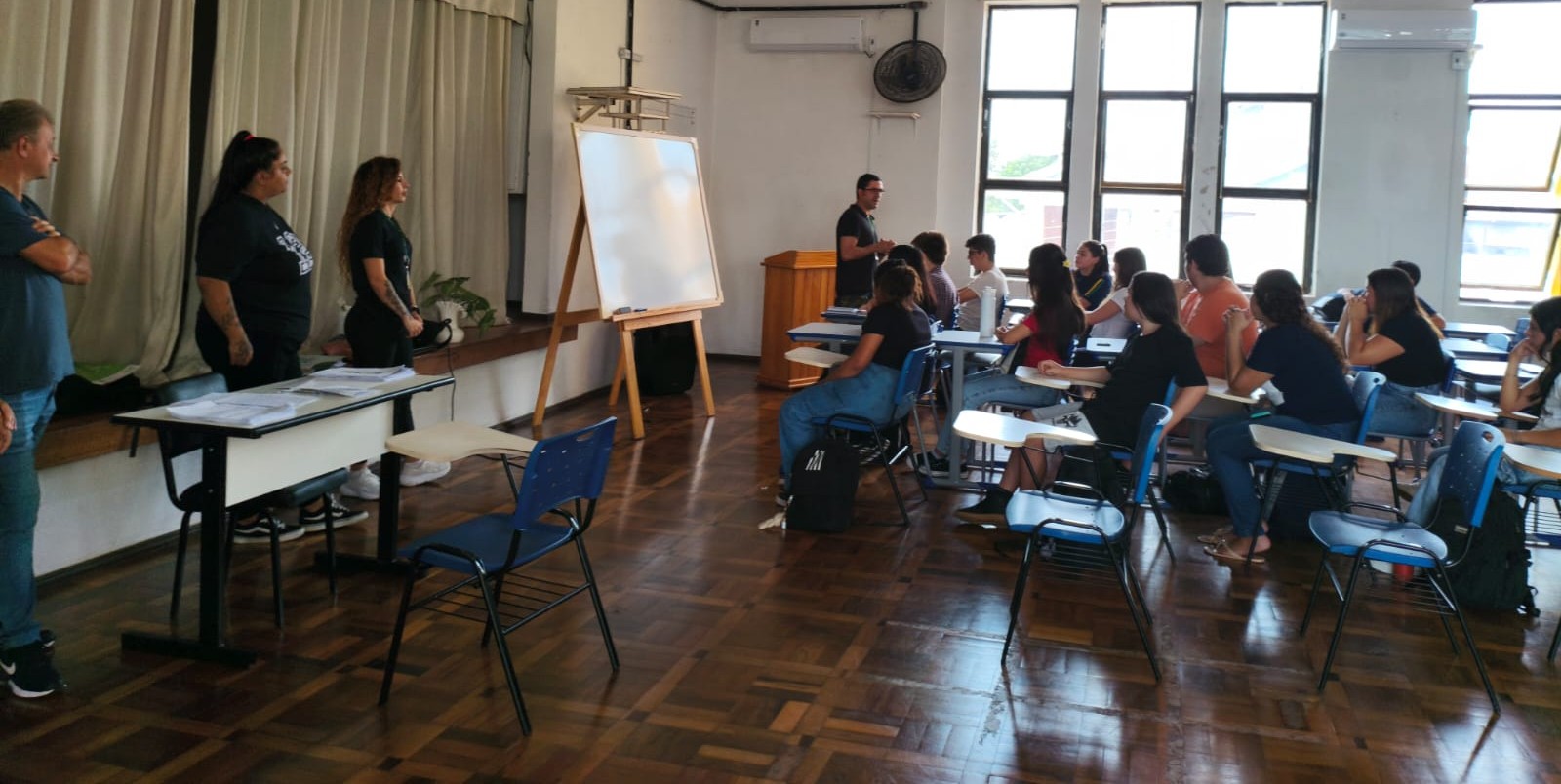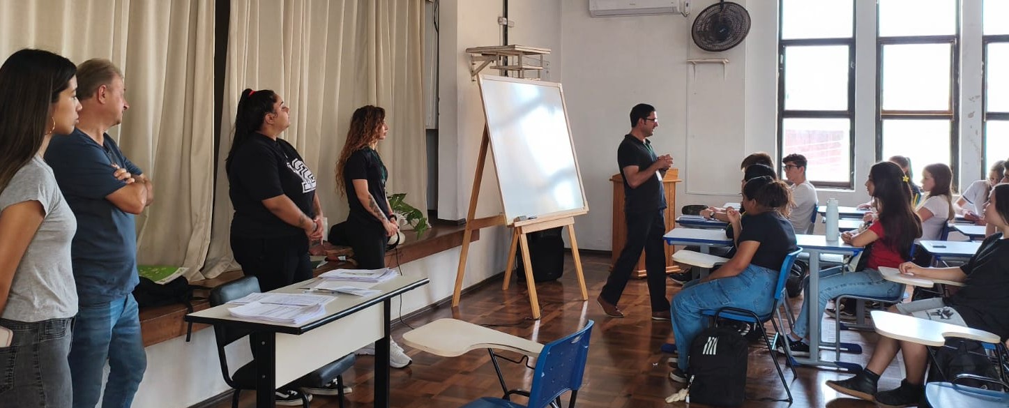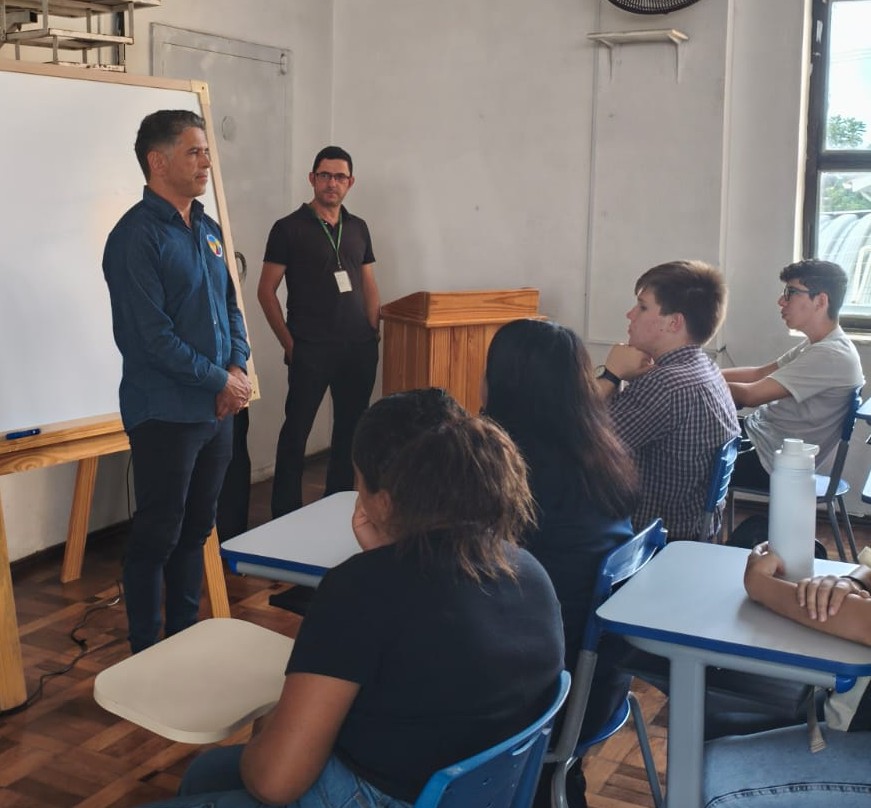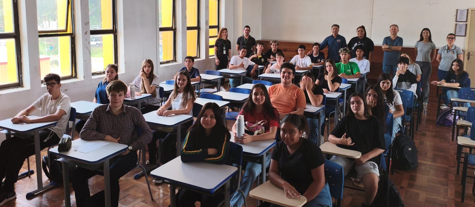 A abertura contou com a presença do diretor da escola, Benhur Lucídio Terra Santos, da vice-diretora Adriana Markus Nicoletti, que também atua como professora de Matemática, e da professora Aline Beatriz Germano Silveira, responsável pela disciplina de Ciências da Natureza. Também estiveram presentes a monitora de Ciências da Natureza, a monitora de Língua Portuguesa e o monitor de Matemática, que atuarão no acompanhamento das atividades ao longo do programa.