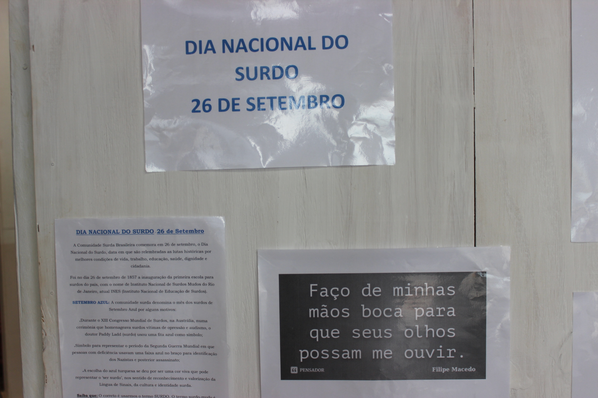 Em comemoração ao Dia Nacional do Surdo, 26/09, o Núcleo de Apoio a Pessoas com Necessidades Educacionais Especiais (NAPNE) do IFFar – Campus Panambi organizou uma exposição de produções culturais surdas, a qual está disposta no hall de entrada do campus até sexta-feira, 28/09.