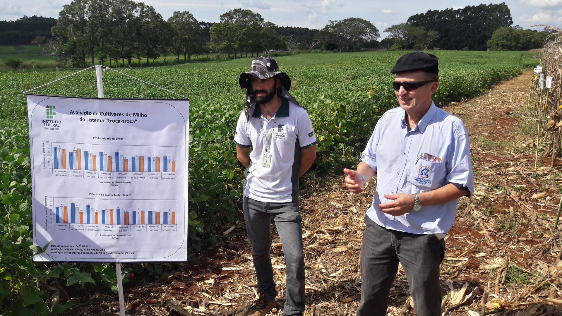 No dia 05/09, as professoras Micaela Takeuchi e Alieze Nascimento da Silva, e o professor e coordenador do Curso de Agronomia do IFFar - Campus Panambi, Volnei Meneghetti, acompanharam os estudantes do curso no XIV Dia de Campo da Cooperativa Central Gaúcha Ltda (CCGL), no município de Cruz Alta (RS).